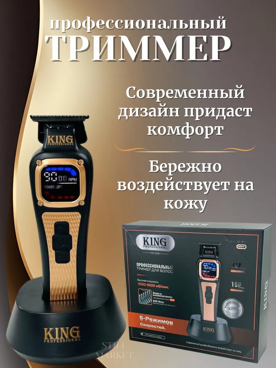 The KING-2109 professional trimmer is a versatile device for men that allows you to easily and safely maintain a well-groomed face and body. Thanks to high-quality blades and an ergonomic body, this device is suitable for shaving, beard, mustache, eyebrows, hair removal, and any haircut.