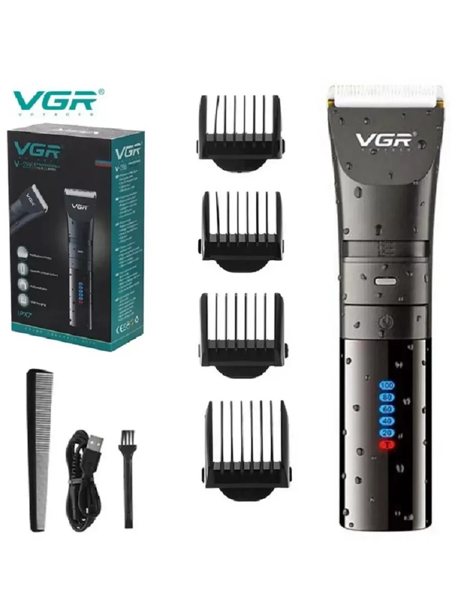 | Комплектация | расческа; щеточка для чистки; Насадки: 4-6/7-9/10-12/16-18 мм; инструкция; техническое масло; Машинка для стрижки VGR V00286; USB-кабель для зарядки |