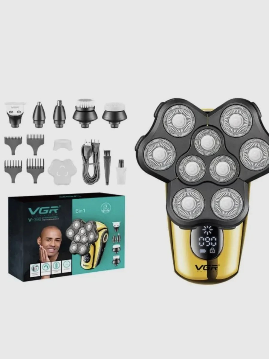 Электробритва роторная, триммер для бороды, носа и волос, прибор для ухода за лицом VGR V-396 имеет 9 дополнительных насадок, которые позволят вам легко справится с любыми сложными участками кожи.
