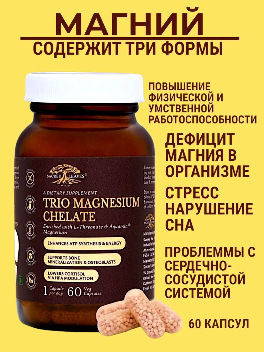 Trio Magnesium Chelate Sacred Leaves 60 капсул — Ваш идеальный помощник для поддержания здоровья и энергии!