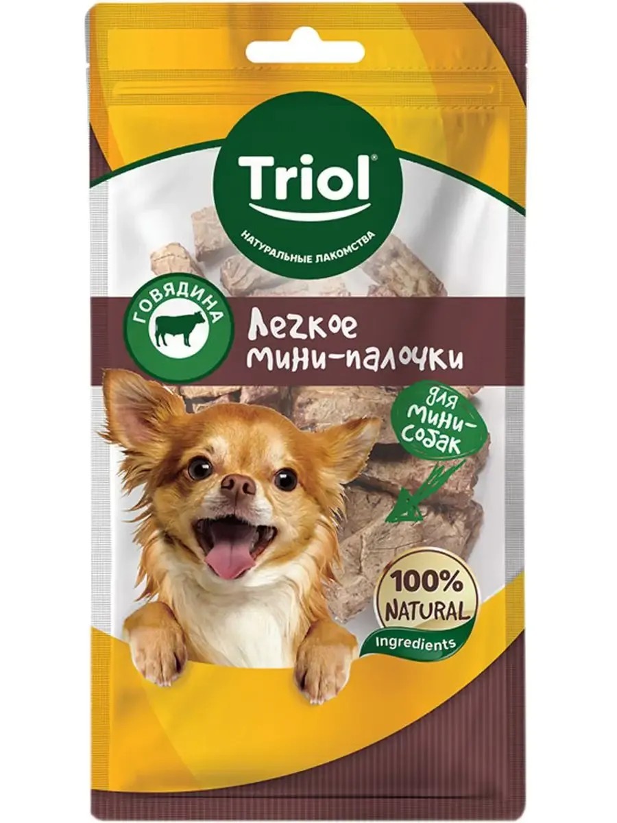 Лакомство Triol для собак маленьких пород мини палочки легкое говяжье 30 гр. Мини-палочки из говяжьего легкого – это 100% натуральное лакомство для собак, приготовленное с сохранением всех полезных свойств.