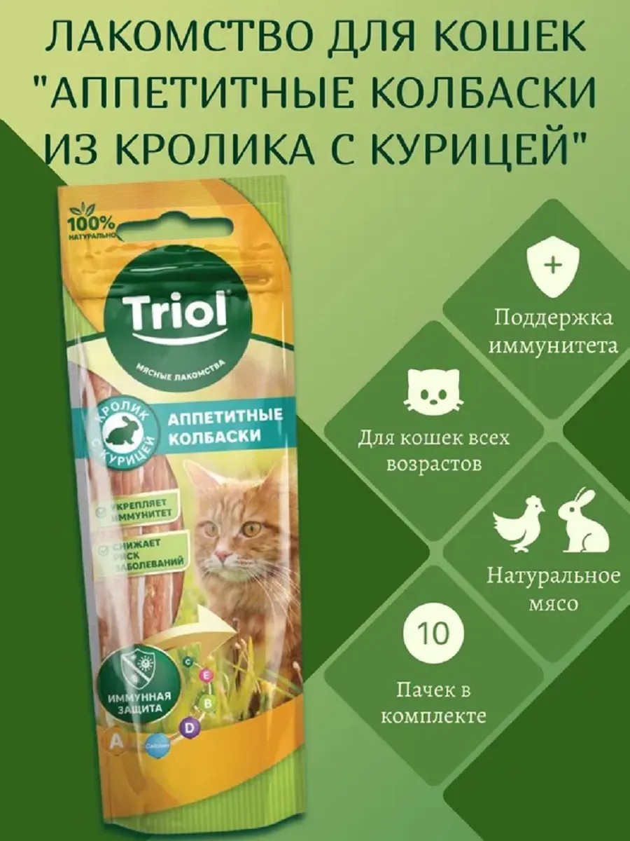 Triol Аппетитные колбаски из кролика с курицей д/кошек, 40г, 10шт