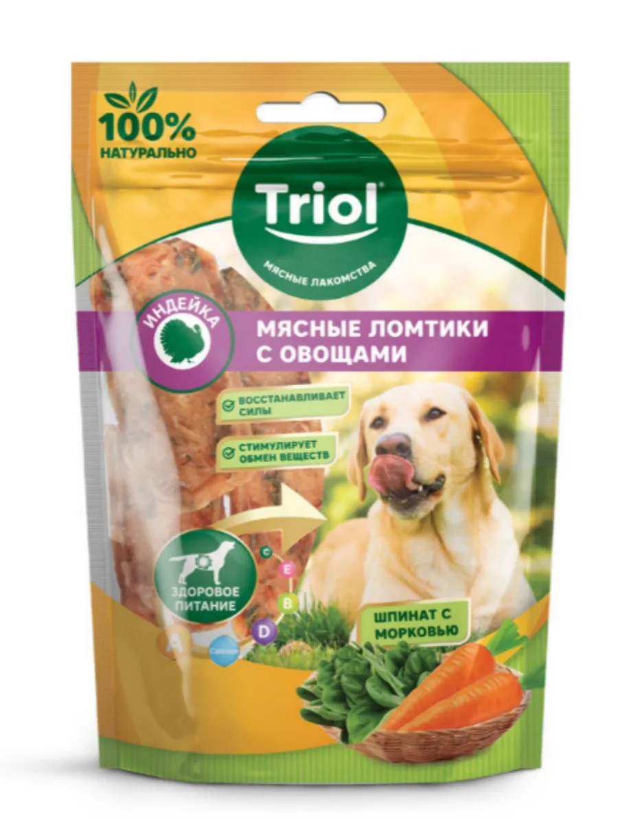 Triol Лакомство для собак Мясные ломтики из индейки с морковью 70г