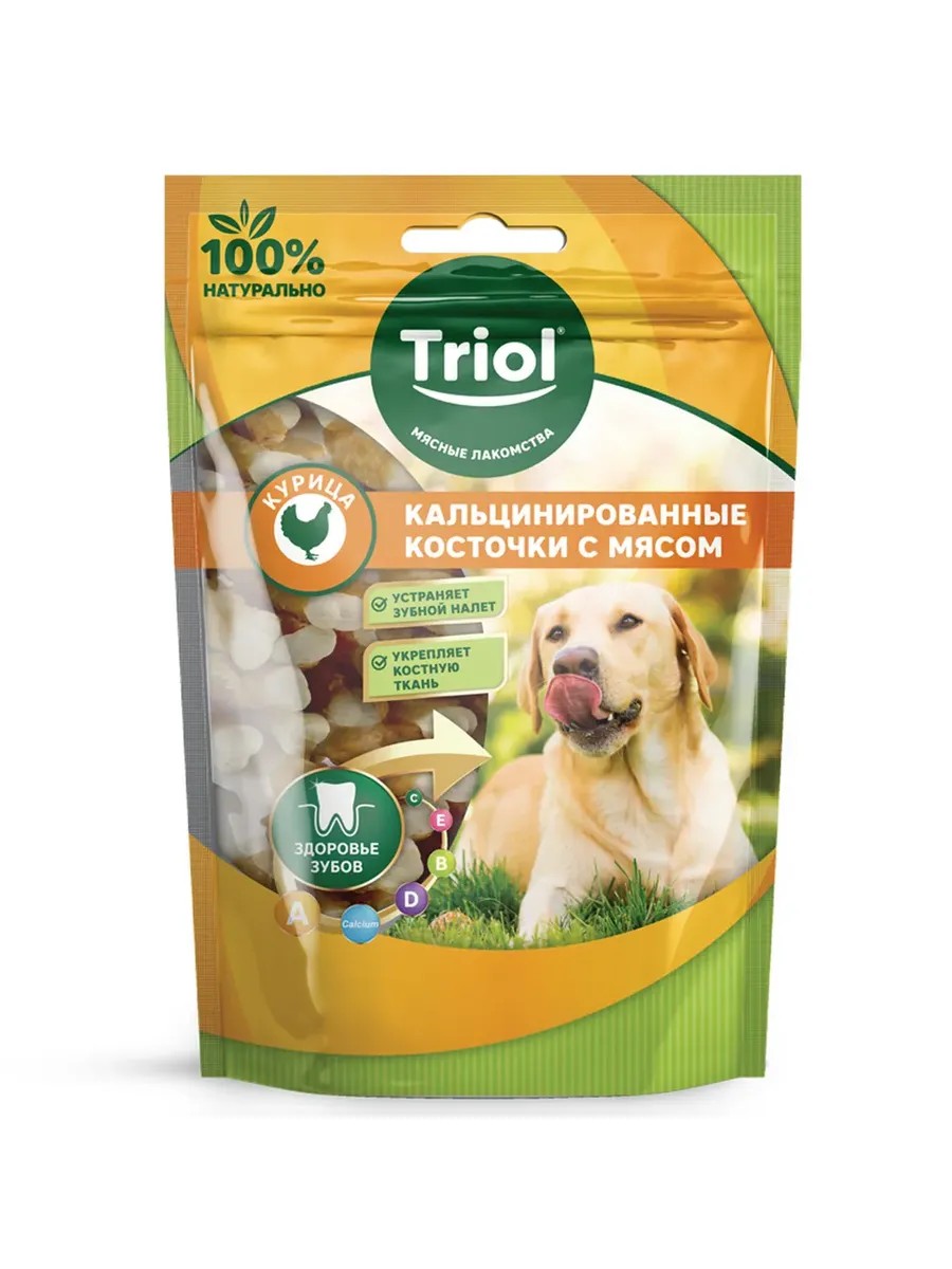 Triol Лакомство для собак Кальцинированые косточки с курицей 70г