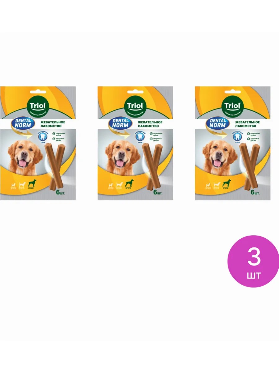 Лакомство для собак Triol / Триол DENTAL NORM для взрослых животных крупных пород, жевательные палочки 240г / сухой корм.