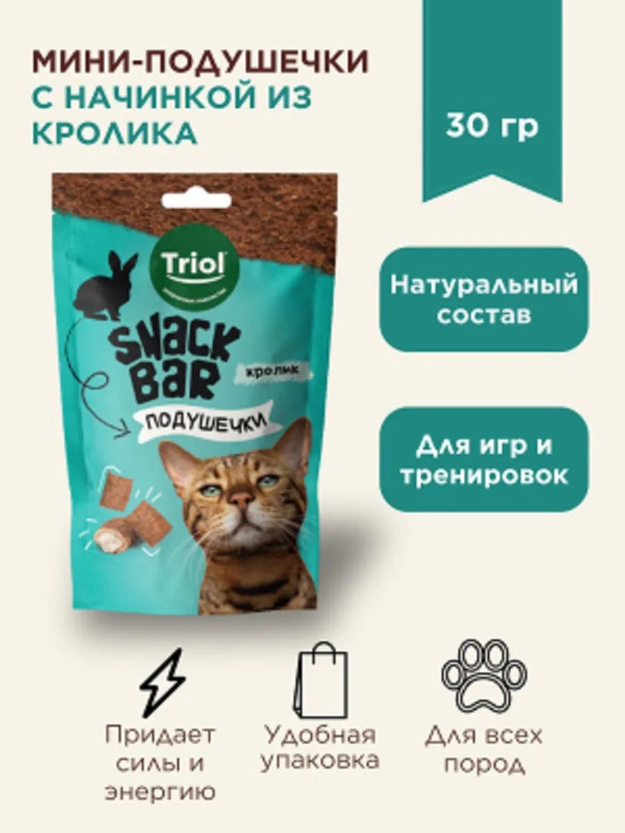 Мини-подушечки с кроликом — это не просто вкуснейшее лакомство, но и полезное дополнение к ежедневному рациону вашей кошки. Каждая подушечка наполнена нежнейшим кремом с ярким вкусом. Сбалансированный состав укрепляет иммунитет питомца и улучшает работу нервной системы. Вес нетто 30г.