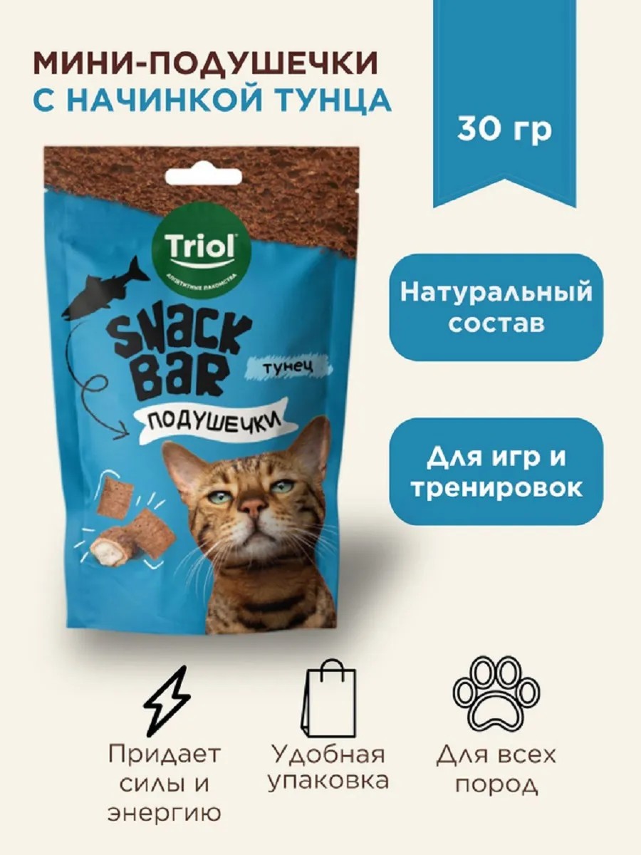 Мини-подушечки с тунцом – это не просто вкуснейшее лакомство, но и полезное дополнение к ежедневному рациону вашей кошки. Каждая подушечка наполнена нежнейшим кремом с ярким вкусом. Сбалансированный состав укрепляет иммунитет питомца и улучшает работу нервной системы. Вес нетто 30г.