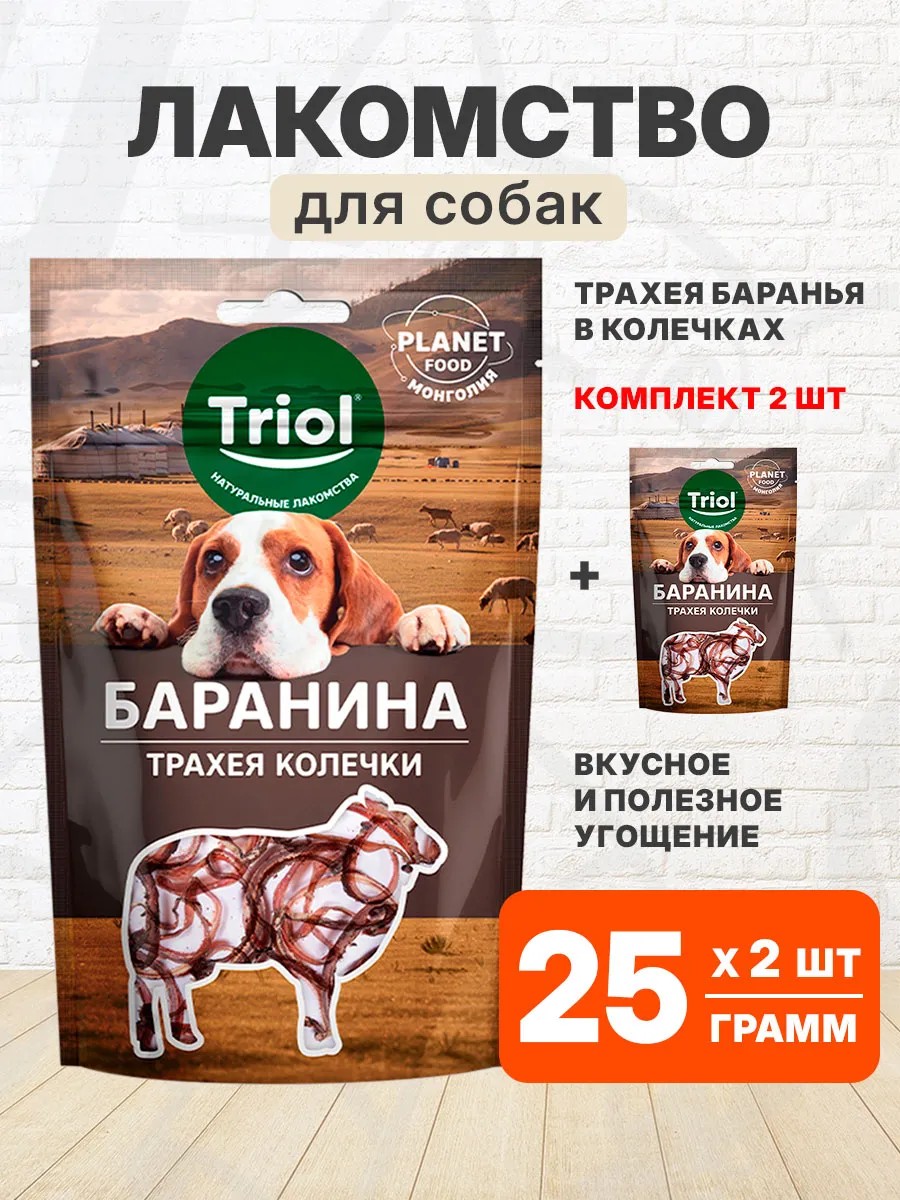 Triol Лакомство трахея в колечках для собак баранина 25 г 2 шт