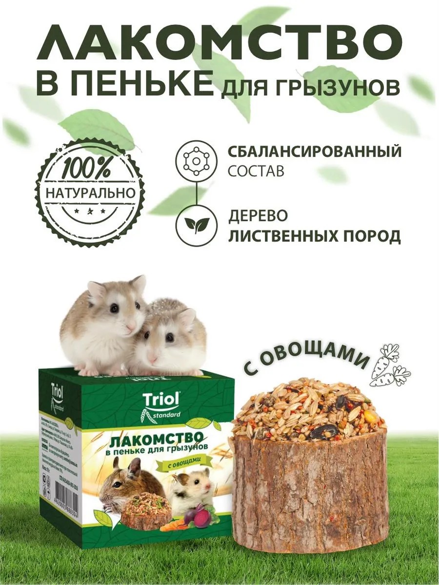 Лакомство в пеньке Триол - это вкусное и полезное дополнение к основному рациону, которое обеспечит вашего любимца всеми необходимыми витаминами и минералами.
