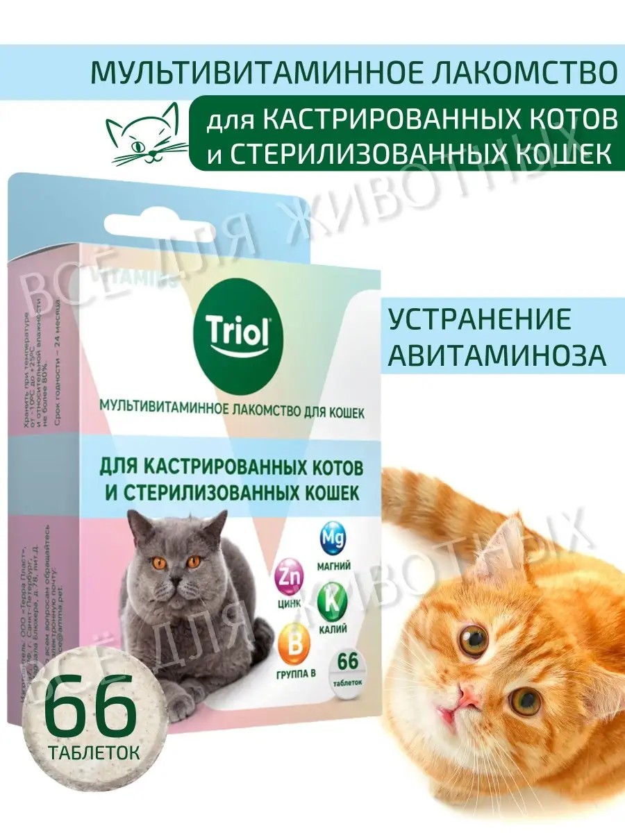 Мультивитаминное лакомство TRIOL - это источник полезных веществ, необходимых для укрепления иммунитета и обеспечения нормального обмена веществ вашей кошки.
