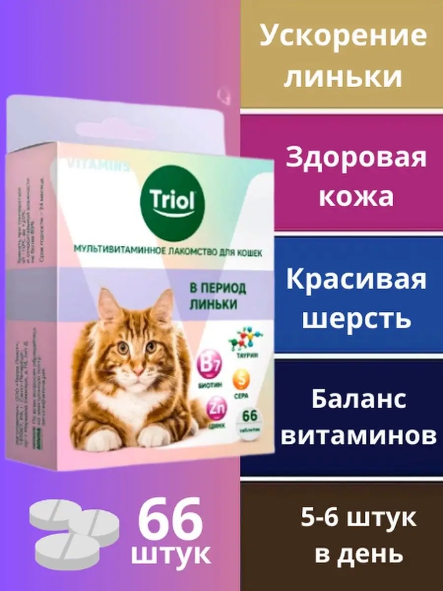 Мультивитаминное лакомство TRIOL это источник полезных веществ, необходимых для укрепления иммунитета и обеспечения нормального обмена веществ вашей кошки. Основной рацион, как правило, содержит только базовый набор микроэлементов и не учитывает особенностей конкретного питомца, его предрасположенности к заболеваниям, а также увеличения потребности в витаминах во время стресса. Мультивитаминное лакомство TRIOL решает эти проблемы и эффективно заботится о здоровье вашего питомца.