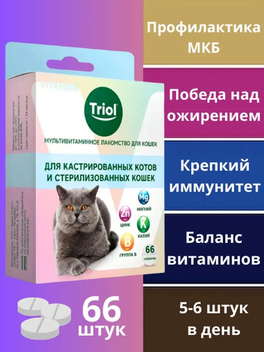 Мультивитаминное лакомство TRIOL это источник полезных веществ, необходимых для укрепления иммунитета и обеспечения нормального обмена веществ вашей кошки. Основной рацион, как правило, содержит только базовый набор микроэлементов и не учитывает особенностей конкретного питомца, его предрасположенности к заболеваниям, а также увеличения потребности в витаминах во время стресса. Мультивитаминное лакомство TRIOL решает эти проблемы и эффективно заботится о здоровье вашего питомца