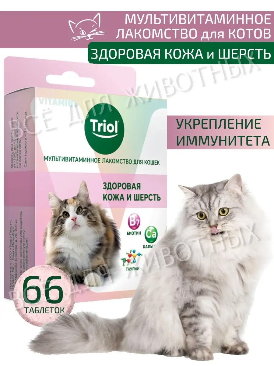 Мультивитаминное лакомство TRIOL - это источник полезных веществ, необходимых для укрепления иммунитета и обеспечения нормального обмена веществ вашей кошки.