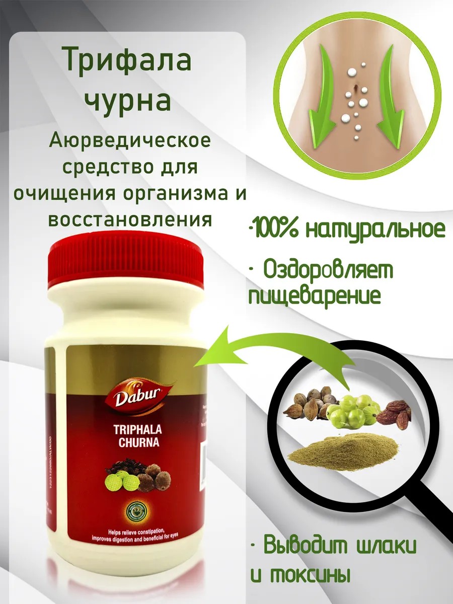 | Особенности продукта | Очищение омоложение Трифала чурна; Triphala Guggulu Трифла выведение шлаков токсинов |