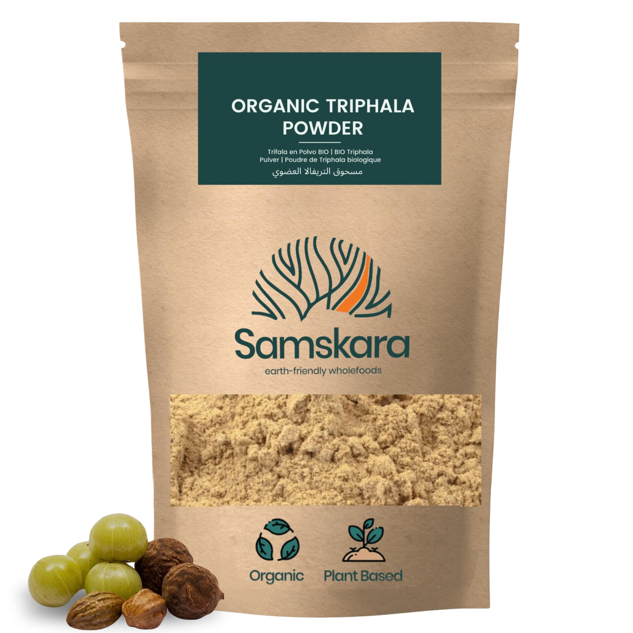 ECO-FRIENDLY AND PRACTICAL PACKAGING: Packaged in a recyclable kraft paper bag with a zip closure, ensuring optimal storage and minimal environmental impact. An authentic Ayurvedic product, respectful of tradition and nature. EASY TO PREPARE: Mix with a glass of warm water to maximize its effects. Can also be added to juices, infusions, or smoothies for a complete Ayurvedic benefit, enriched with organic shatavari powder and organic amla powder. ORGANIC, PURE, AND NATURAL: Certified organic triphala, GMO-free, palm oil-free, sulfite-free, refined sugar-free, and free of chemical additives. A natural, vegan, and preservative-free product, perfect for an Ayurvedic wellness regimen. NUTRIENT-RICH FORMULA: Helps relieve constipation, bloating, and heartburn, and promotes weight management. Ideal for incorporating into your Ayurvedic regimen with ingredients like haritaki plus and guggul. AYURVEDIC BLEND OF 3 FRUITS: Combines Amalaki, Bibhitaki and Haritaki to balance the Vata, Pitta and Kapha doshas, ??in accordance with the principles of Ayurveda products and organic triphala powder.EMBALLAGE ÉCOLOGIQUE ET PRATIQUE: Conditionné dans un sachet kraft recyclable avec fermeture zip, garantissant un stockage optimal et un impact environnemental minimal. Un produit authentique de l'ayurveda, respectueux des traditions et de la nature. FACILE À PRÉPARER: Mélangez avec un verre d'eau tiède pour optimiser ses effets. Peut aussi être ajouté aux jus, infusions ou smoothies pour un bienfait ayurvédique complet, enrichi en shatavari bio poudre et poudre amla bio. BIO, PUR ET NATUREL: Certifié triphala bio, sans OGM, huile de palme, sulfites, sucres raffinés ni additifs chimiques. Produit naturel, végétalien et sans conservateurs, parfait pour une cure bien-être ayurvédique. FORMULE RICHE EN NUTRIMENTS: Aide à soulager la constipation, les ballonnements, l'acidité gastrique et favorise la gestion du poids. Idéal pour intégrer à votre régime ayurvédique avec des ingrédients comme le haritaki plus et le guggul. MÉLANGE AYURVÉDIQUE DE 3 FRUITS: Combine Amalaki, Bibhitaki et Haritaki pour équilibrer les doshas Vata, Pitta et Kapha, conformément aux principes de l'ayurveda produits et de la triphala poudre bio.Triphala en Poudre BIO 100 Pure Samskara Tribe Mélange Ayurvédique Indien de Amla, Haritaki et Bibhitaki Aide à la Digestion avec de l'Eau Tiède 100g x 1 Pack