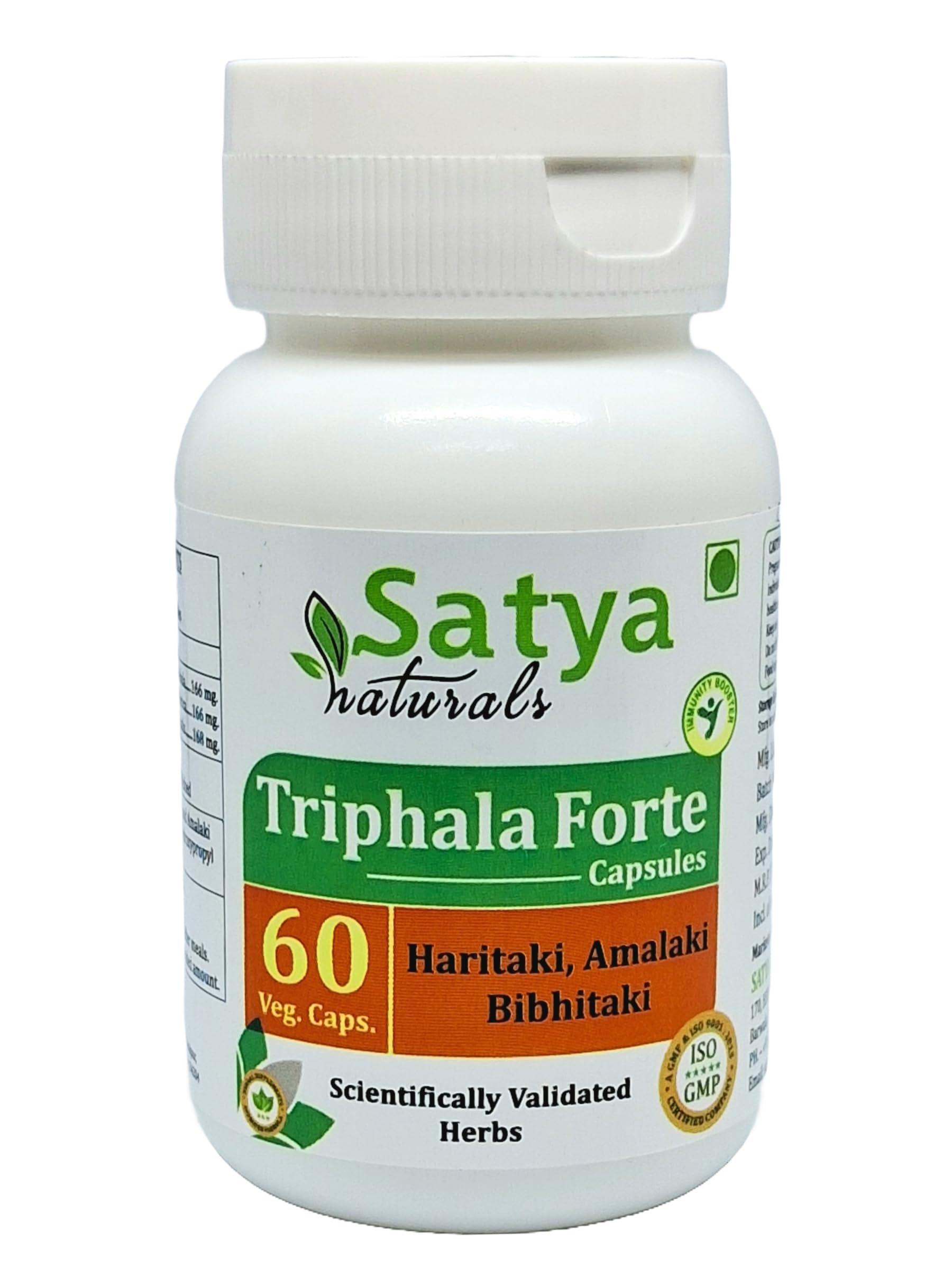 Nourish Your Well-being with Triphala Forte Capsules Satya Naturals brings you a potent dose of Triphala (Amalaki (Emblica officinalis), Haritaki (Terminalia chebula), Bibhitaki (Terminalia belerica) Forte Capsules in convenient vegetarian capsules. Each Capsule delivers 500 mg. of this revered herb, traditionally used in Ayurvedic practices. Features High Potency: 500 mg. per Capsule for a powerful serving. All-Natural: Made with Blended Triphala herb. Vegetarian Capsules: Suitable for a wider range of dietary preferences. Convenient Dosage: 60 Capsules per bottle for a long-lasting supply. Multiple Packs: Stock up or share the benefits with a friend or family member.