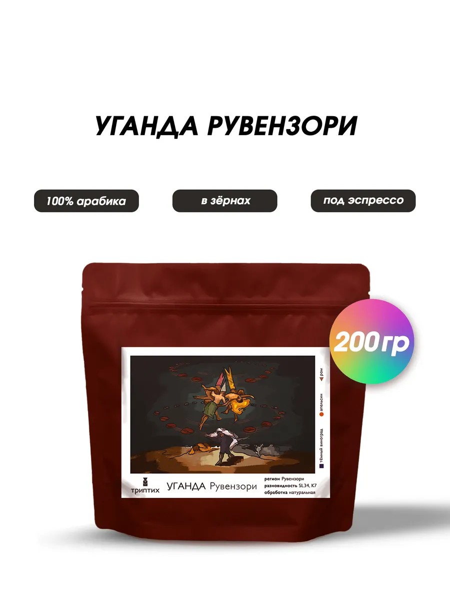 Триптих Кофе в зернах 200 г, Уганда Рувензори. 100% Арабика.