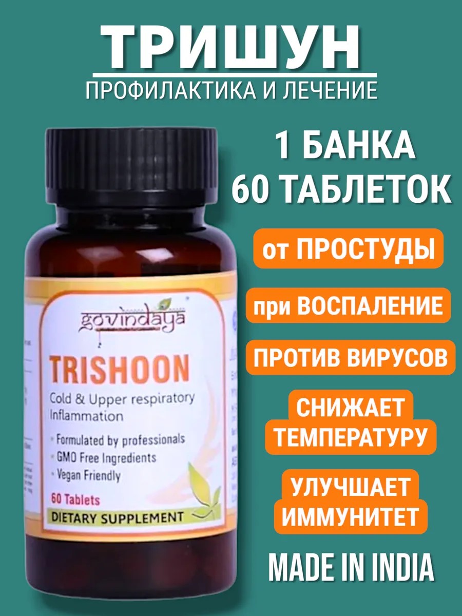 Тришун – это натуральное средство из Индии. Препарат показал высокую эффективность в период сезонных простуд. Он повышает эффективность лечения вирусных заболеваний. После его употребления температура снижается до нормальных значений.