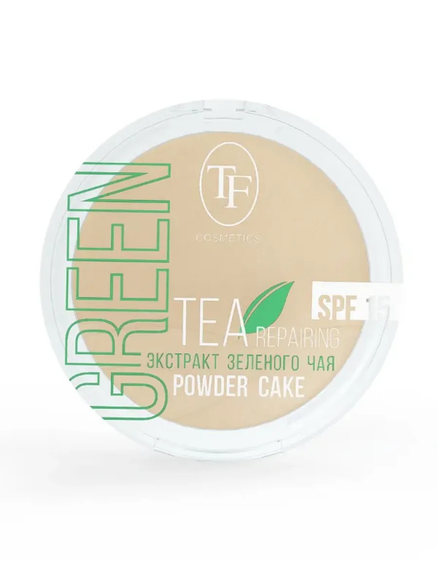 Compact face powder with green tea extract combines the effective properties of skincare and decorative cosmetics.