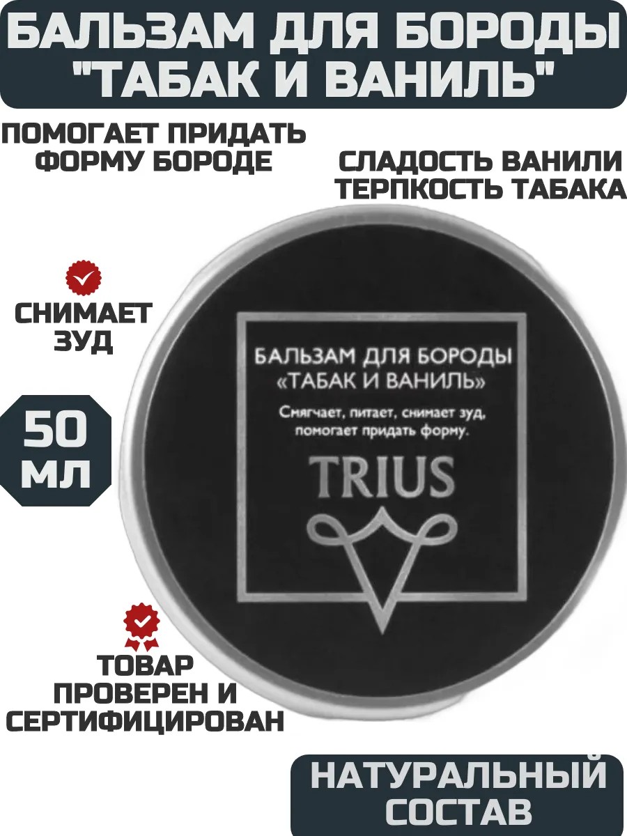 Бальзам для бороды ручной работы Trius создан для решения комплекса проблем. Снимает раздражение и зуд во время роста бороды, смягчает и помогает уложить жесткие и непослушные волосы, питает кожу и волосяные луковицы комплексом витаминов (E, B1, B2, B6,PP, аминокислота L-глутамин) и минералов (соединений K, P, Mg, Ca) восстанавливает природный жировой баланс кожи, борется с секущимися кончиками. Три аромата на выбор. 15 масел в составе.