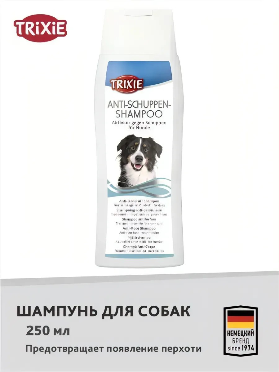 Trixie 2904 Anti-Dandruff Shampoo is designed for dog skin and coat care.
