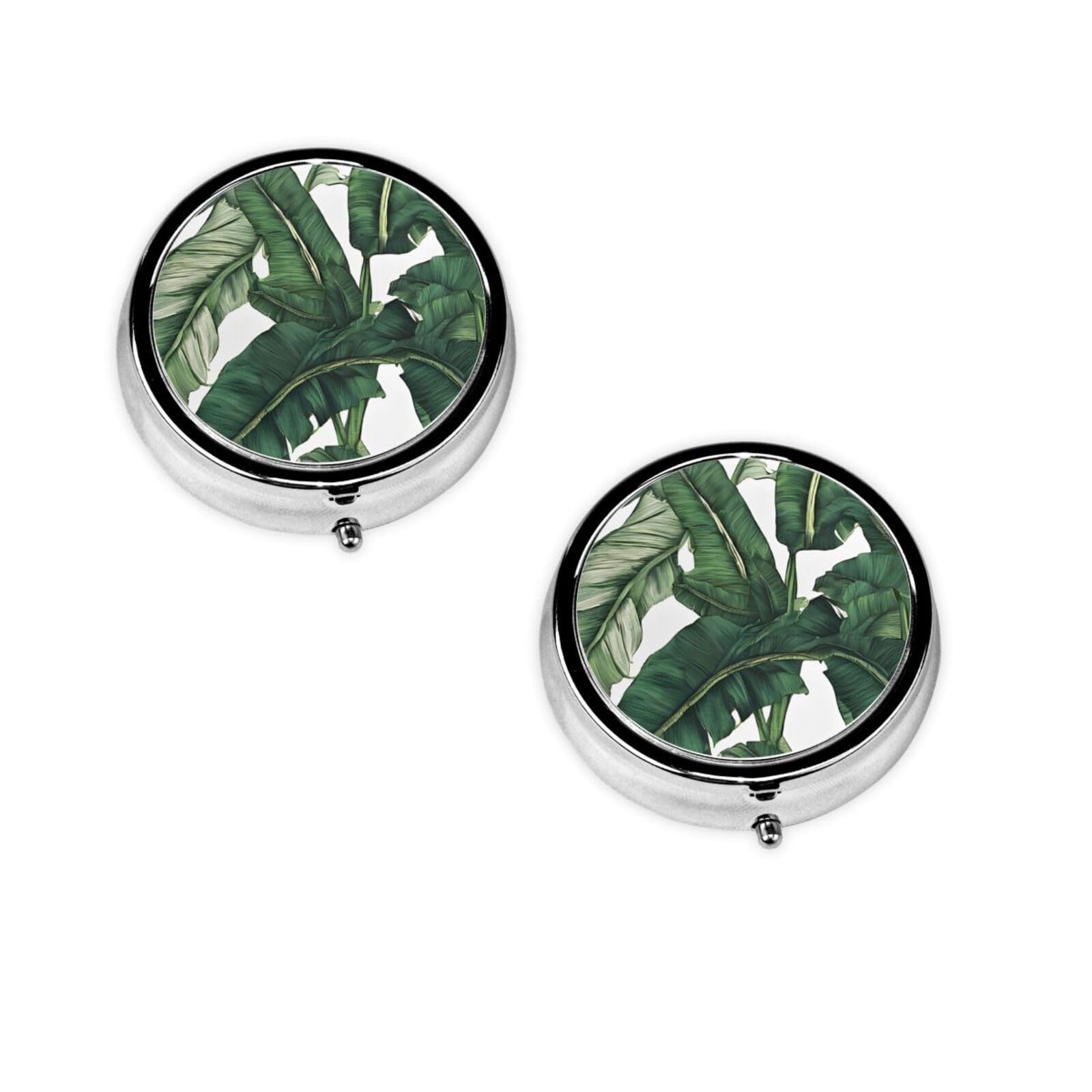 (Tropical Banana Palm Leaves) Round Pill Box 3 Compartment Pill Box Mini Decorative Pocket Purse Portable Travel Medicine Tablet Vitamin Holder Organizer Pill Case