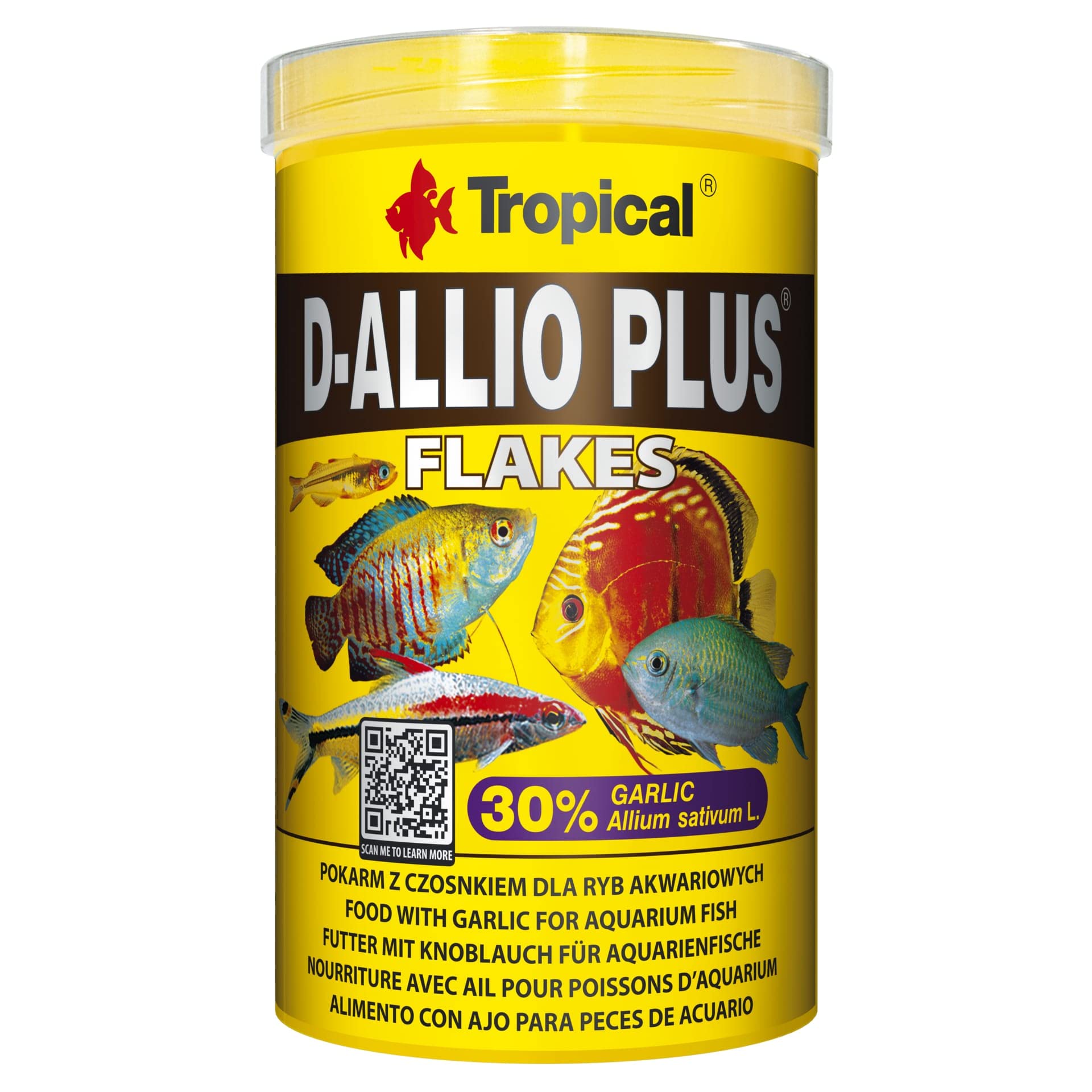 Multi-ingredient flake food, with garlic (min. 30 ), for discus and other fish with demanding nutritional needs, including sea fish. D-ALLIO PLUS offers the advantage of the valuable characteristics of garlic (Allium sativum L.) known for a very long time: it strengthens the fish organism and enhances digestive processes. Its highly nutritional value, optimally balanced vitamins and trace elements in addition to the characteristics of garlic make D-ALLIO PLUS an essential food for fish having to adapt to new conditions or undergoing medical treatment. INGREDIENTS By-products of plant origin (garlic min. 30 ), fish and fish by-products, cereals, molluscs and crustaceans, vegetable protein extracts, algae (Spirulina platensis min. 3 ), eggs and egg products, oils and fats, mineral substances (including zeolite 1 ). Vitamins, provitamins and chemically well-defined substances with similar effects: vit. At 39,200 IU, vit. D3 2,430 IU, vit. E 132 mg, vit. C 960 mg. Trace element compounds: E1 (Fe) 53.5 mg, E6 (Zn) 15.0 mg, E5 (Mn) 11.3 mg, E4 (Cu) 2.7 mg, E2 (I) 0.3 mg, E8 (Se) 0.28 mg, E7 (Mo) 0.07 mg. Lecithin. Dyes. Antioxygens. DIRECTIONS FOR USE Store in a dry place close the bottle tightly after each use Essential during treatment, convalescence, and acclimatization. Strengthens the body and supports the digestive process. Multi-ingredient flake food with added garlic. Nourriture en flocons à multi ingrédients, avec ail (min. 30 ), pour discus et autres poissons aux besoins nutritifs exigeants, y compris les poissons de mer. D-ALLIO PLUS offre l'avantage des caractéristiques précieuses de l'ail (Allium sativum L.) connues depuis très longtemps: il renforce l'organisme des poissons et rehausse les processus digestifs. Sa valeur hautement nutritive, des vitamines et oligo éléments optimalement balancés en plus des caractéristiques de l'ail font de D-ALLIO PLUS une nourriture indispensable pour des poissons ayant à s'adapter à de nouvelles conditions ou subissant un traitement médical. INGRÉDIENTS Sous-produits d'origine végétale (l'ail min. 30 ), poissons et sous-produits de poissons, céréales, mollusques et crustacés, extraits de protéines végétales, algues (Spirulina platensis min. 3 ), œufs et produits d'œufs, huiles et graisses, substances minérales (y compris zéolite 1 ). Vitamines, provitamines et substances à effet analogue chimiquement bien définies: vit. A 39 200 IU, vit. D3 2 430 IU, vit. E 132 mg, vit. C 960 mg. Composés d'oligo-éléments: E1 (Fe) 53,5 mg, E6 (Zn) 15,0 mg, E5 (Mn) 11,3 mg, E4 (Cu) 2,7 mg, E2 (I) 0,3 mg, E8 (Se) 0,28 mg, E7 (Mo) 0,07 mg. Lécithine. Colorants. Antioxygènes. MODE D'EMPLOI Entreposer dans un endroit sec bien refermer le bidon après chaque utilisation Indispensable pendant le traitement, la convalescence et l'acclimatation. Renforce l'organisme, soutient le processus digestif. Aliment en flocons à multi ingrédients avec ajout d'ail.