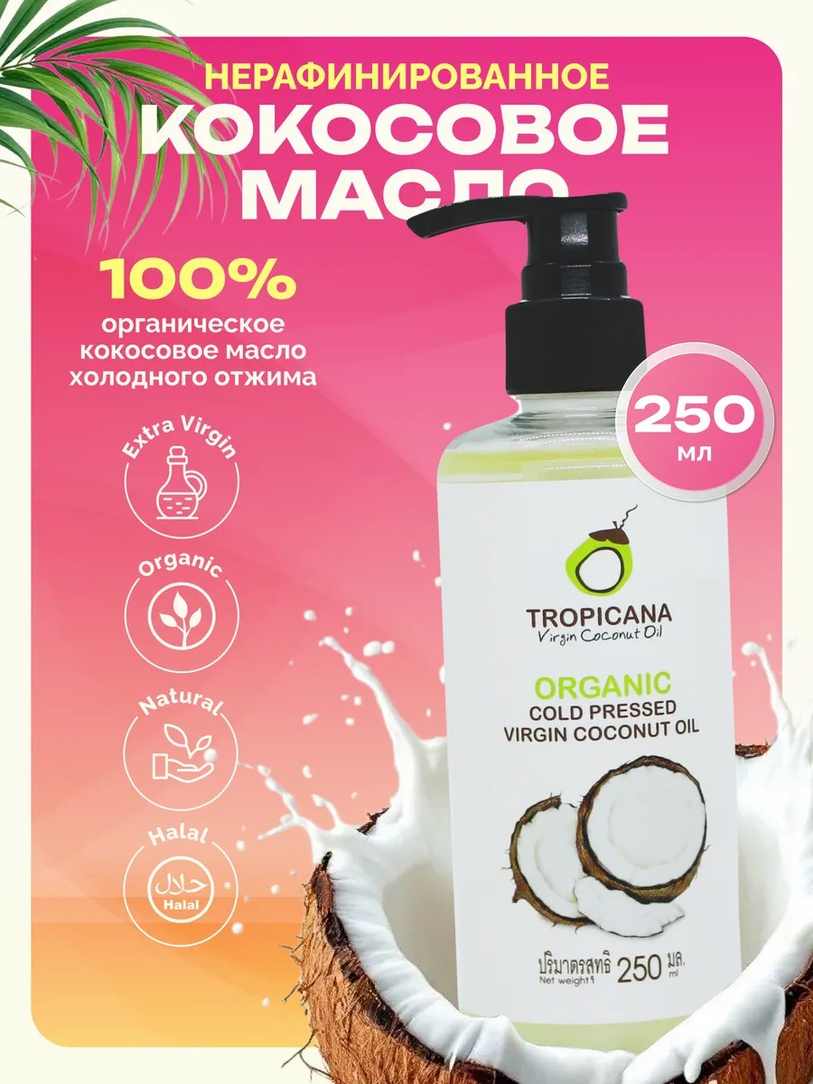 Oil - это продукт высочайшего качества, полученный методом холодного отжима. Нерафинированное кокосовое масло Тропикана - это универсальное средство, которое подходит для ухода за телом, лицом, рук, ног, губами, волосами и даже ногтями. Натуральное растительное, отлично увлажняет и питает кожу, делая ее более упругой и мягкой. Оно также может быть использовано как массажное масло для расслабляющего массажа тела, поможет избавиться от сухости кожи или для укрепления кончиков волос, оно способствует росту волос. Масло часто применяется в косметических целях благодаря своим питательным свойствам. Блеск на губах или живительная маска для волос - кокосовое масло справится с этим легко. Оно также подходит для детской и мужской кожи, аромамасел и даже продуктов питания. Эффективно при уходе за детской и младенческой кожей. Coconut oil является отличным выбором для беременных женщин благодаря своим питательным свойствам для кожи, отлично помогает предотвратить появление растяжек. И для любитеелей загара, оно станет незаменим на отдыхе. Ведь благодаря ему, Вы можете обрести красивый шоколадный оттенок кожи.