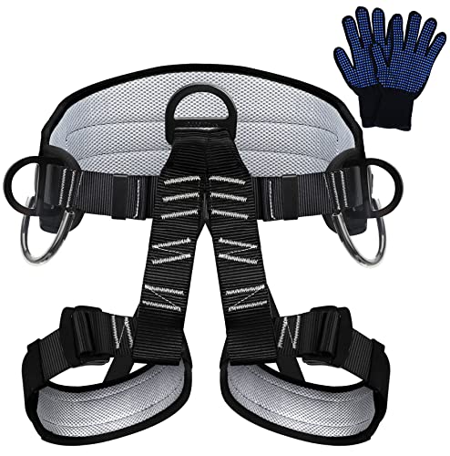 Full Money Back Guarantee:Premium Quality rappelling harness, Thick, Wider and Safety Waist Belt great for women, men and older children. If you are not satisfied with harness for climbing or if you have any question, please feel free to contact us. Wide Range of Uses: Perfecting for tree climbing, indoor climbing, rock climbing, take-out, fire rescue, aerial work, working on the higher level etc. Comfortable cushioning to ensure safety when rock climbing. Comfortable wear:Thicken frame construction guarantees excellent weight distribution for optimal comfort:High load bearing with reinforced belay loop, all the connections and webbing are very sturdy,Easy to wear and adjust and protect your safety during climbing.Designed for comfort and mobility, air permeability waist belt ,sweat-absorbent and comfortable for optimal comfort. Size: Thicken climbing harness fits well on all size, waist 19.6" to 51.2", Leg 15.7" to 32"., one size fits for person. Quality Alloy Reinforced Adjustable Buckle,Well on all ages and can be shared by the whole family. Easy to operate, wear and remove. Premium Quality: The half-body harness is made of high-strength polyester. High load bearing, all connections and webbing are very strong, high tensile strength, abrasion resistant, always keep you safe. Tree climbing harness weight limit: 300KG. Breaking strength: 15KN. CE certified. Imported. ?Polyester.Best Sellers Rank: See Top 100 in Sports & Outdoors. Occasion: Climbing,Construction,Fire Rescue,Indoor Climbing,Rock,Sports,Tree,Tree Climbing. Fabric Type: ?Polyester. Collection Name: All. Fit Type: Regular. Material: Metal. Brand: TT TRSMIMA. Color: Black. Country of Origin: China. : B0B14YZ8W6. Date First Available: May 12, 2022. Department: unisex-adult. Item model number: A2. Package Dimensions: 13.39 x 9.76 x 5.43 inches; 2.36 Pounds.