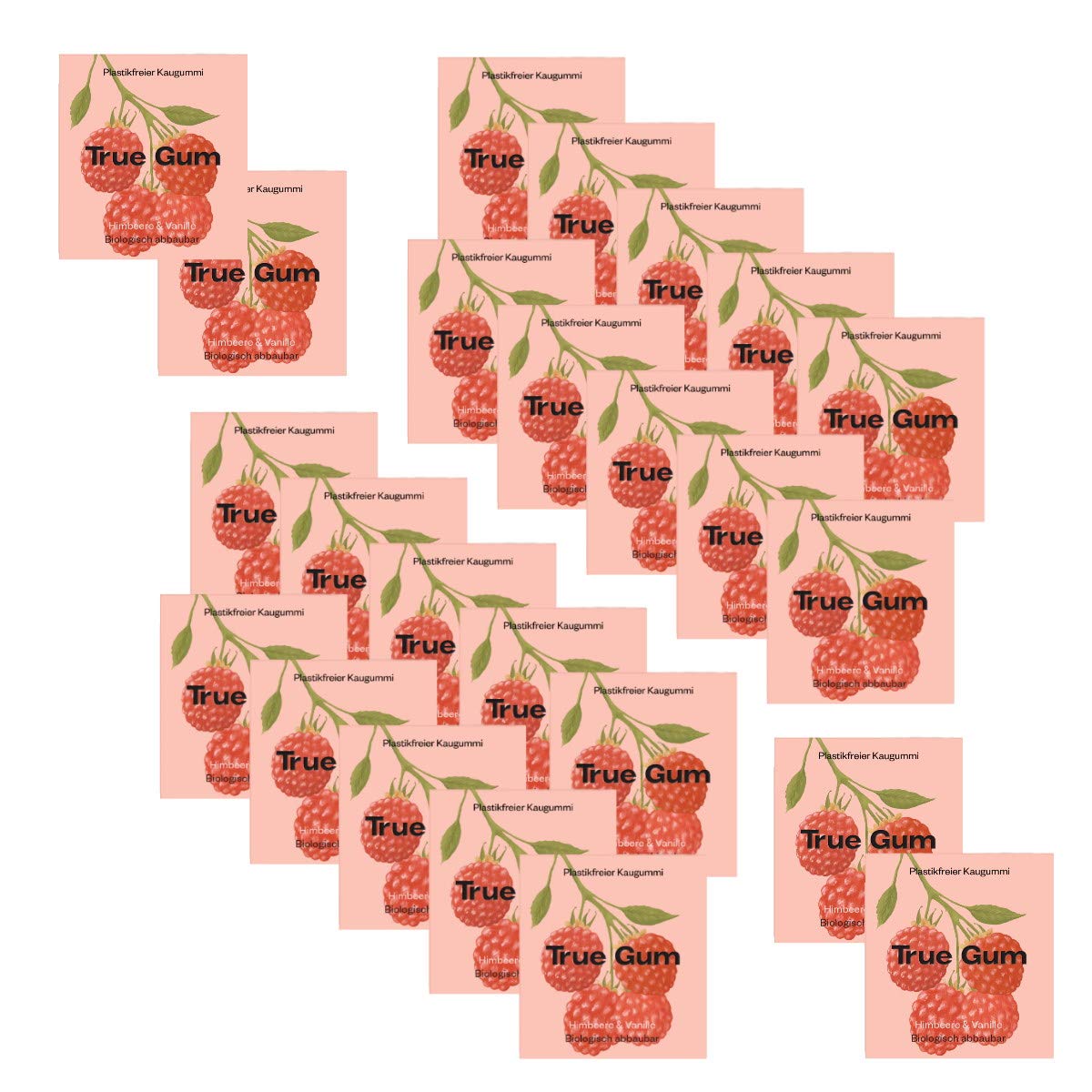 True Gum - Gomme sans plastique - Framboise Vanille - 24 x 21 g - 100 biodégradable