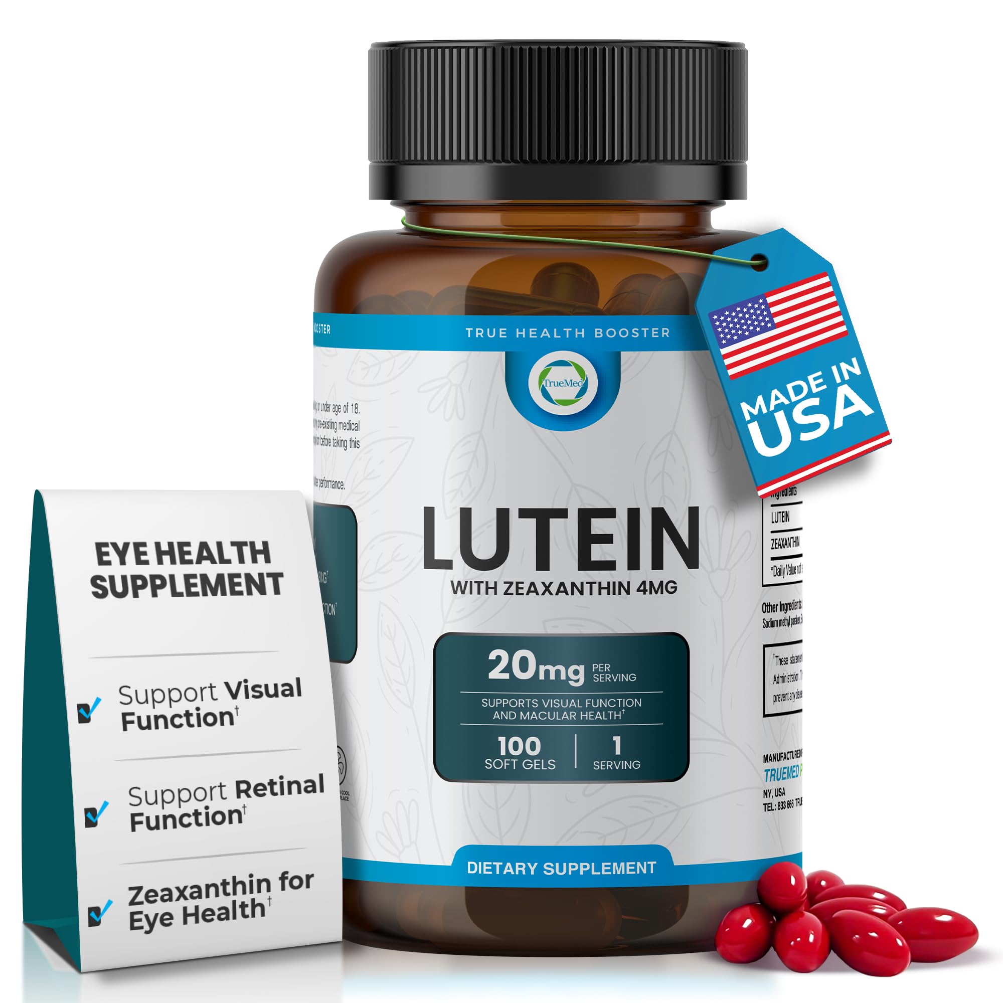 TRUEMED Lutein 20mg with Zeaxanthin 4mg Eye Health Supplement for Vision Clarity Blue Light Filtering & Macular Health Antioxidant Formula for Daily Retinal Wellness 100 Softgels