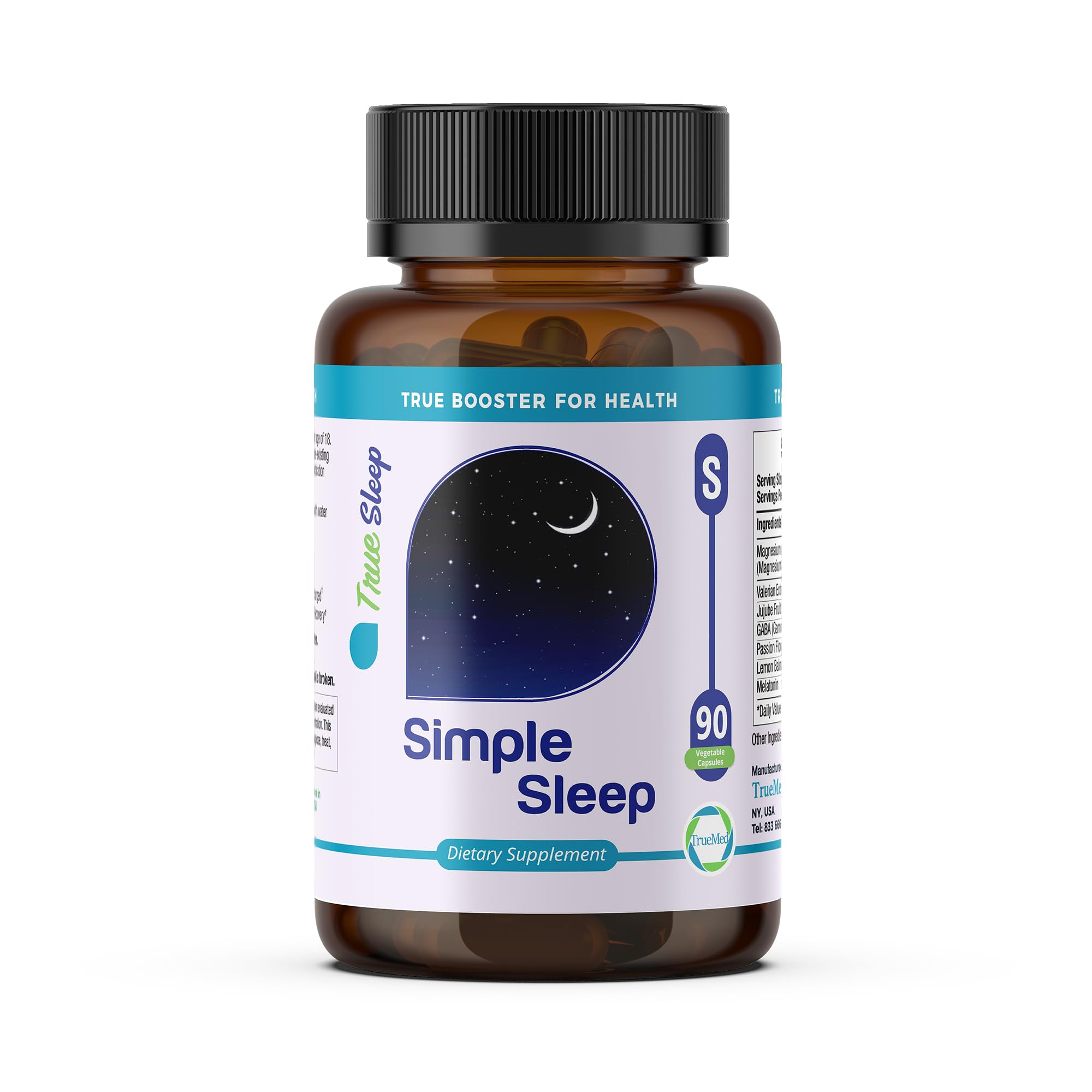 Non-Habit Forming: TrueMed Simple Sleep is non-habit-forming, providing sleep support without concerns about dependency or morning drowsiness. Natural Ingredients: Crafted with a thoughtful balance of natural ingredients, including magnesium and lemon balm, known for their sleep-supportive and stress-reducing properties. Stress Reduction : Our sleep supplement aids in eliminating stress, a significant factor in sleep disturbances, by calming your mind and promoting relaxation before bedtime. Faster Sleep Onset: The blend of ingredients, including melatonin, GABA, and Jujube Fruit Extract, helps you fall asleep faster, reducing the time it takes to drift into slumber. Promotes Better Sleep Quality : TrueMed Simple Sleep is a natural sleep aid formulated to support your body's natural sleep cycle, helping you achieve more restful and uninterrupted sleep.