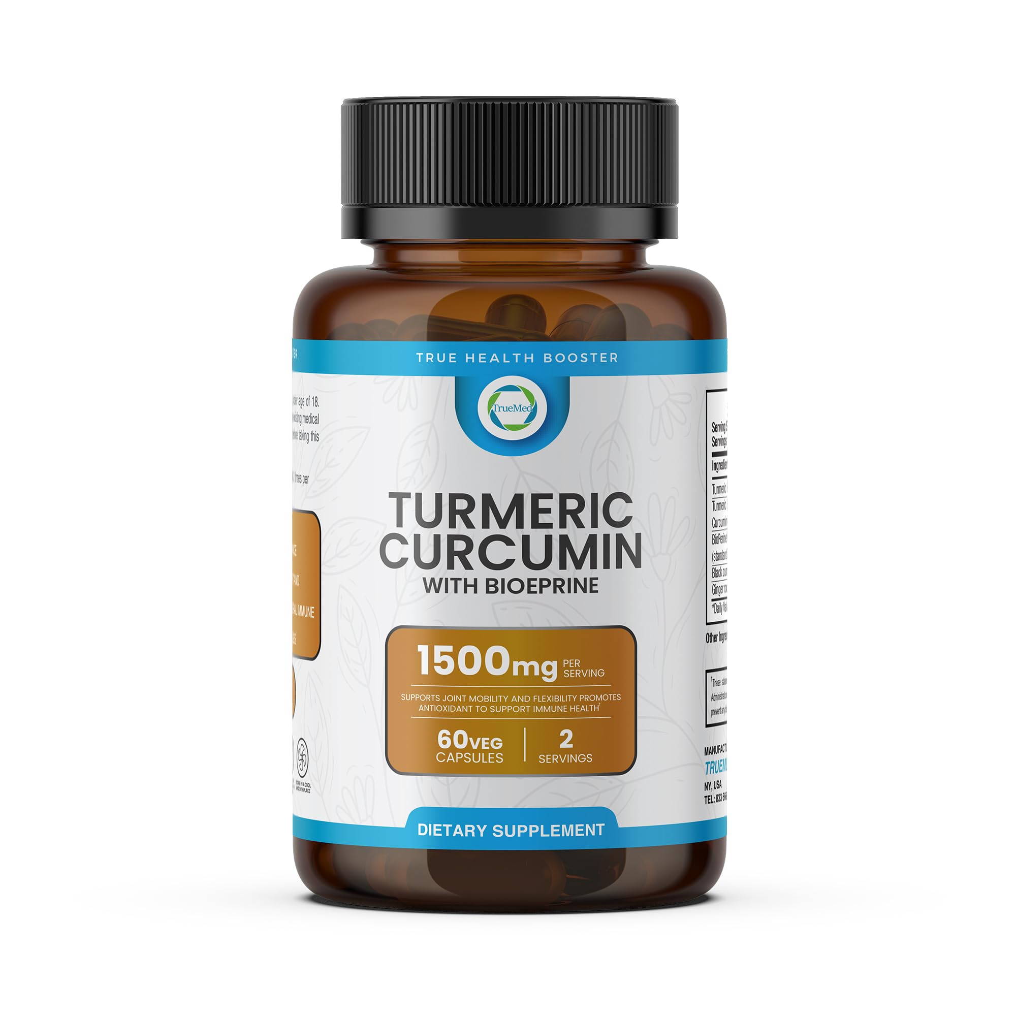 TRUEMED Turmeric Curcumin with BioPerine 1500mg - High Absorption Turmeric Extract 95% Curcuminoids with Black Cumin & Ginger - Natural Joint Support & Immune Health - 60 Veggie Capsules
