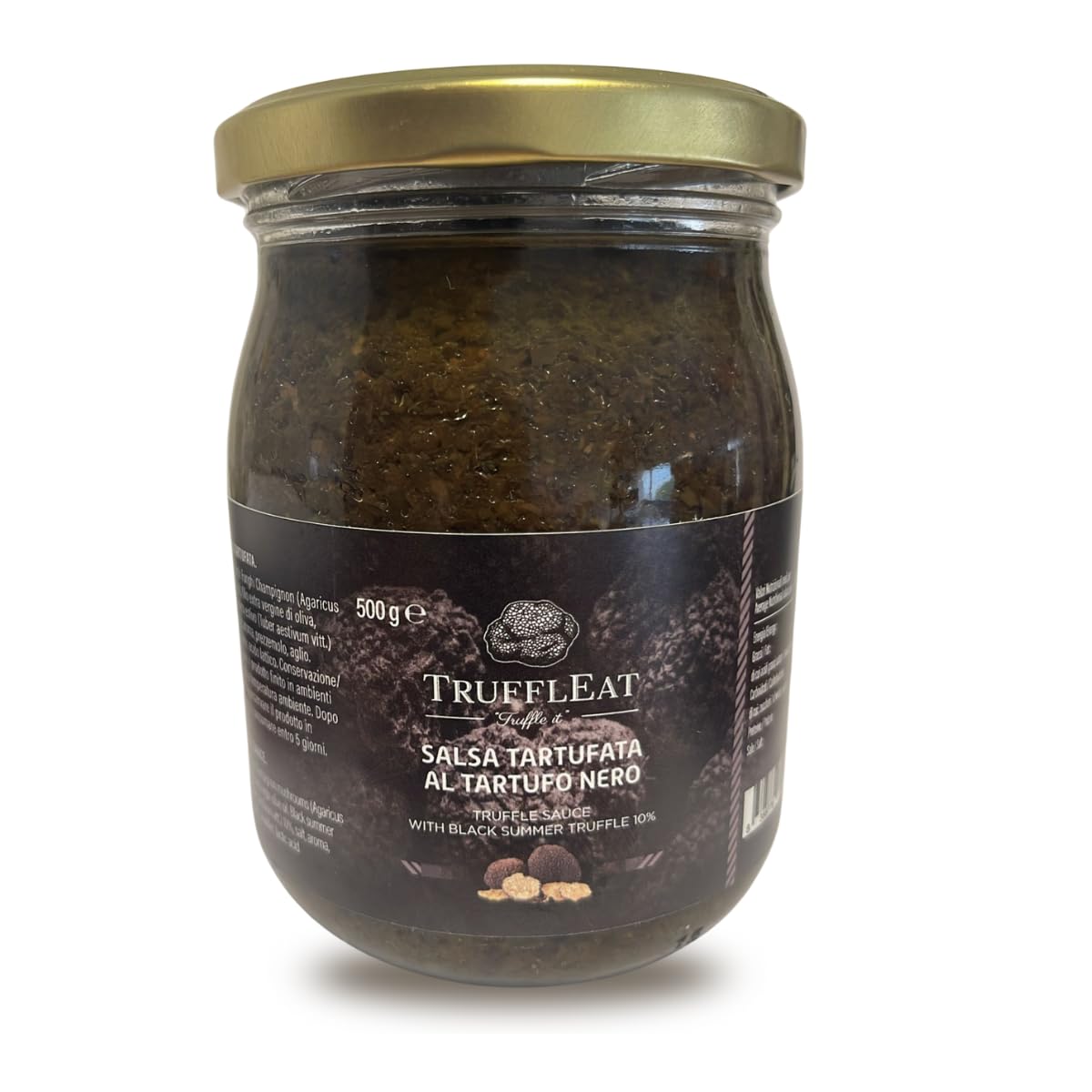 Made from high-quality, natural ingredients such as mushrooms, extra virgin olive oil, aromatic herbs, and a delicate natural flavoring, our truffle sauce enhances every dish with its intense and enveloping taste. The presence of summer truffle (Tuber aestivum Vitt.) gives the product an incomparable fragrance that captivates the senses and makes every dish special. Fresh and delicious mushrooms (Agaricus bisporus) are the main ingredient in this seasoning. With their delicate flavor and succulent texture, they add a pleasant note and a harmony of flavors that delight the palate. The summer truffle (Tuber aestivum Vitt.) is the distinctive element of this seasoning, bringing with it the inimitable and enveloping aroma of this delicacy. With its intense aroma and distinctive flavor, the summer truffle adds a touch of elegance to every dish, transforming it into a true feast for the senses. TrufflEat has been active for over 10 years in the marketing of fresh truffles and exclusive, high-quality Italian products, both with and without truffles, dealing in authentic products that enrich cuisine with the best of tradition and gastronomic refinement. INGREDIENTS Mushrooms, extra virgin olive oil, summer black truffle 10 , parsley, salt, flavoring, garlicTruffleat Sauce truffée 500 gr Champignons Champignons et Truffe Noire 10 Prêt à l'emploi, Assaisonnement à Base Champignons Champignons et Truffe Noire Été, Sauce Champignons et TruffeDESCRIPTION DU PRODUIT DESCRIPTION DU PRODUIT Fabriquée à partir d'ingrédients naturels de haute qualité, tels que les champignons, l'huile d'olive extra vierge, les plantes aromatiques et un arôme naturel délicat, notre sauce truffée met en valeur chaque plat avec son goût intense et enveloppant. La présence de la truffe d'été (Tuber Aestivum Vitt.) donne au produit une fragrance incomparable, qui capture les sens et rend chaque préparation spéciale. Les champignons (agaricus bisporus), frais et délicieux, sont l'ingrédient principal de cet assaisonnement. Avec leur saveur délicate et leur texture succulente, ils ajoutent une note d'agréable et une harmonie de saveurs qui conquièrent le palais. La truffe d'été (Tuber Aestivum Vitt.) C'est l'élément distinctif de cet assaisonnement, qui apporte avec soi l'arôme inimitable et enveloppant de cette friandise. Avec son parfum intense et sa saveur caractéristique, la truffe d'été ajoute une touche d'élégance à chaque plat, en le transformant en une véritable fête pour les sens. TrufflEat est actif depuis plus de 10 ans dans la commercialisation de truffes fraîches et de produits exclusifs italiens de haute qualité, avec et sans truffe, traitant des produits authentiques qui enrichissent la cuisine avec le meilleur de la tradition et du raffinement gastronomique. INGRÉDIENTS Champignons Champignon, huile d'olive extra vierge, truffe noire d'été 10 , persil, sel, arôme, ail