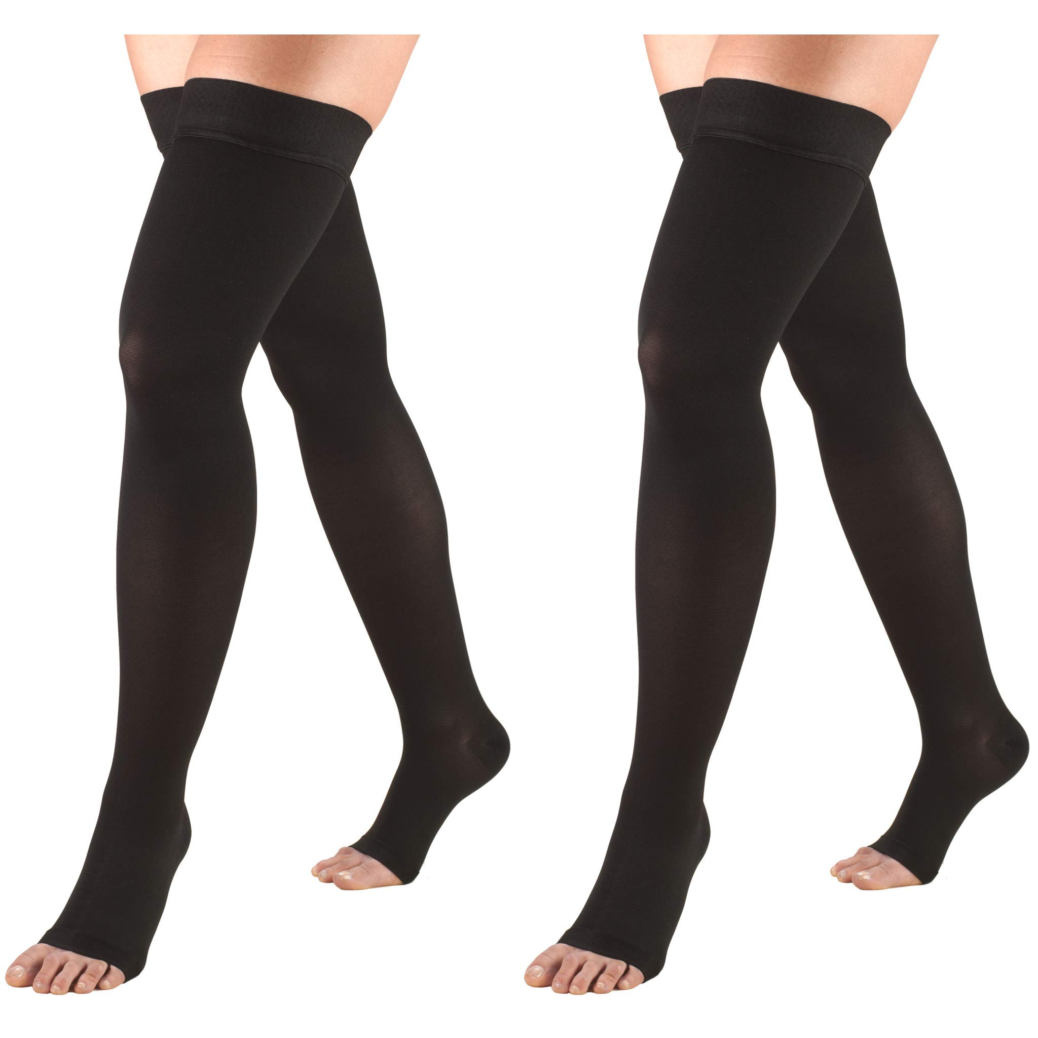 Truform Compression 30-40 Mmhg Thigh High Open Toe Dot Top Stockings Black Large 2 Count