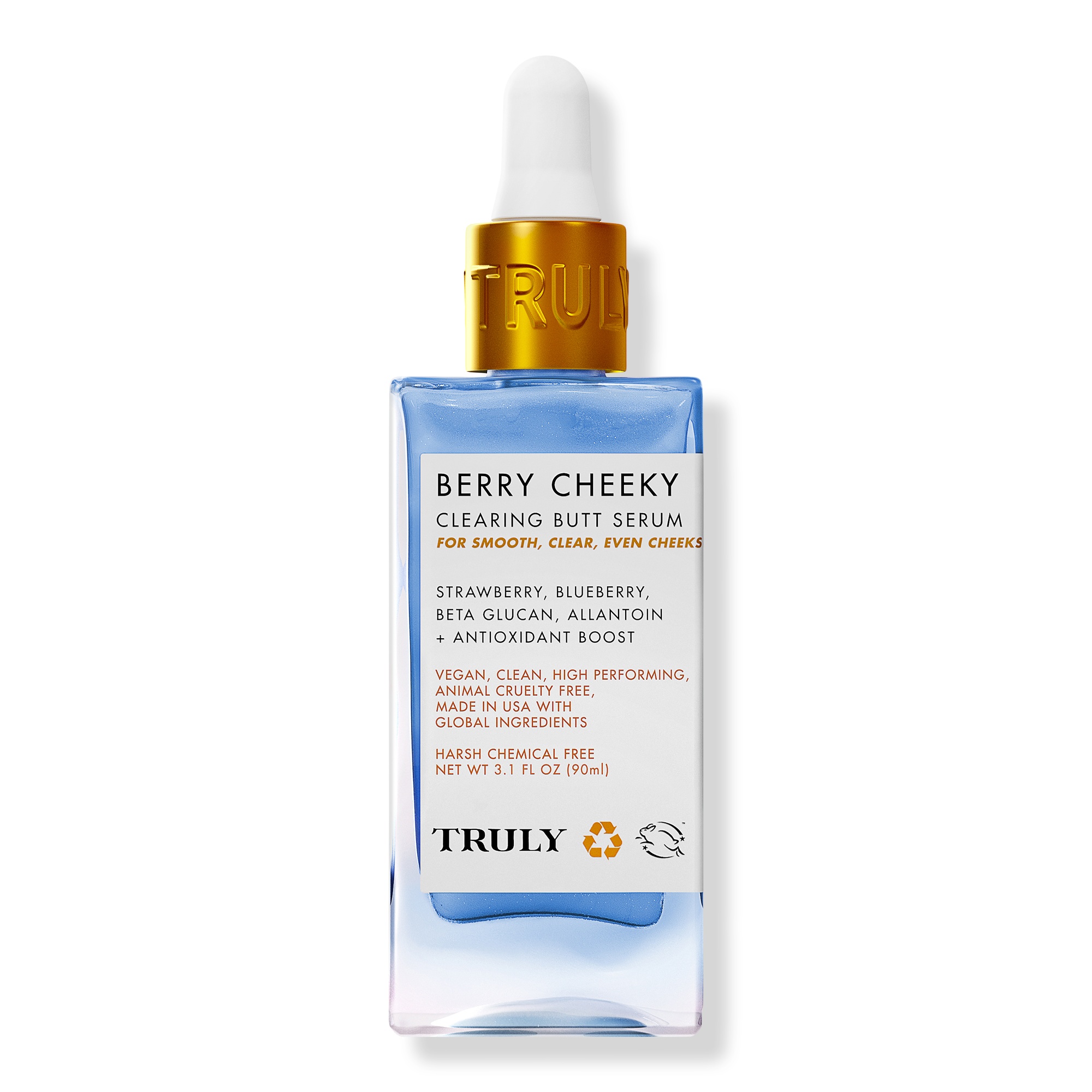 Truly's Berry Cheeky Clearing Butt Serum is a flash absorbing and conditioning everyday booty serum formulated with naturally derived acne-clearing ingredients like antioxidant-rich berries, allantoin and beta glucan.