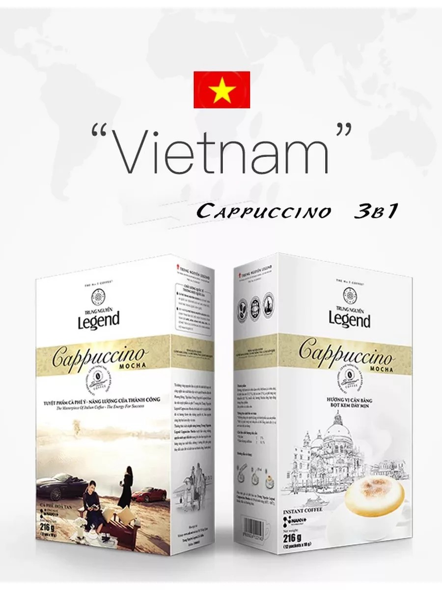 Enjoy the amazing taste of authentic Italian cappuccino with a fresh and intriguing hint of mocha with Legend Classic coffee drink from Trung Nguyen! This high-quality drink is made from a superior coffee solution that dissolves quickly and easily in hot water. Thanks to the unique combination of cream, sugar, and natural coffee, you can give your loved ones energy and a good mood at any time of day. Rich aroma, unforgettable flavor, and ease of preparation—all these advantages make Legend Classic cappuccino the perfect choice for your office, home, or travel!