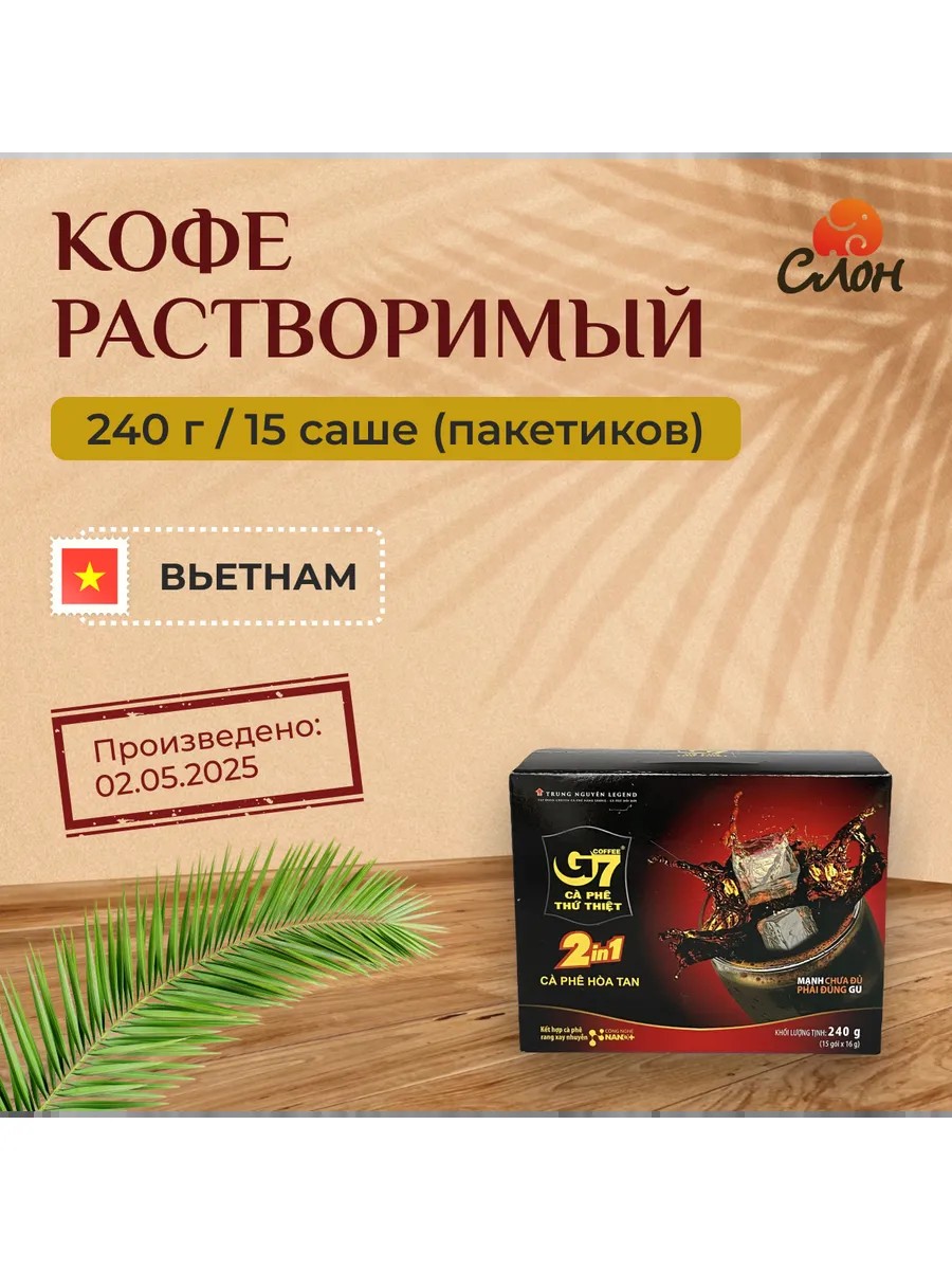 Trung Nguyen G7 Вьетнамский растворимый кофе G7 2 в 1 (15 шт по 16г) - 240г