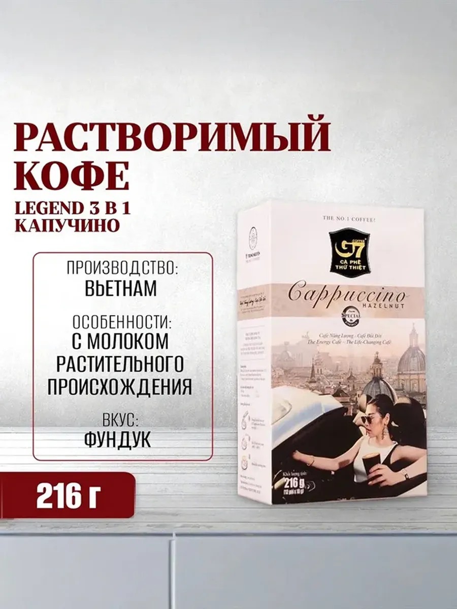 Trung Nguyen G7 Cappuccino имеет уникальный тропический вкус и приятное ореховое послевкусие.