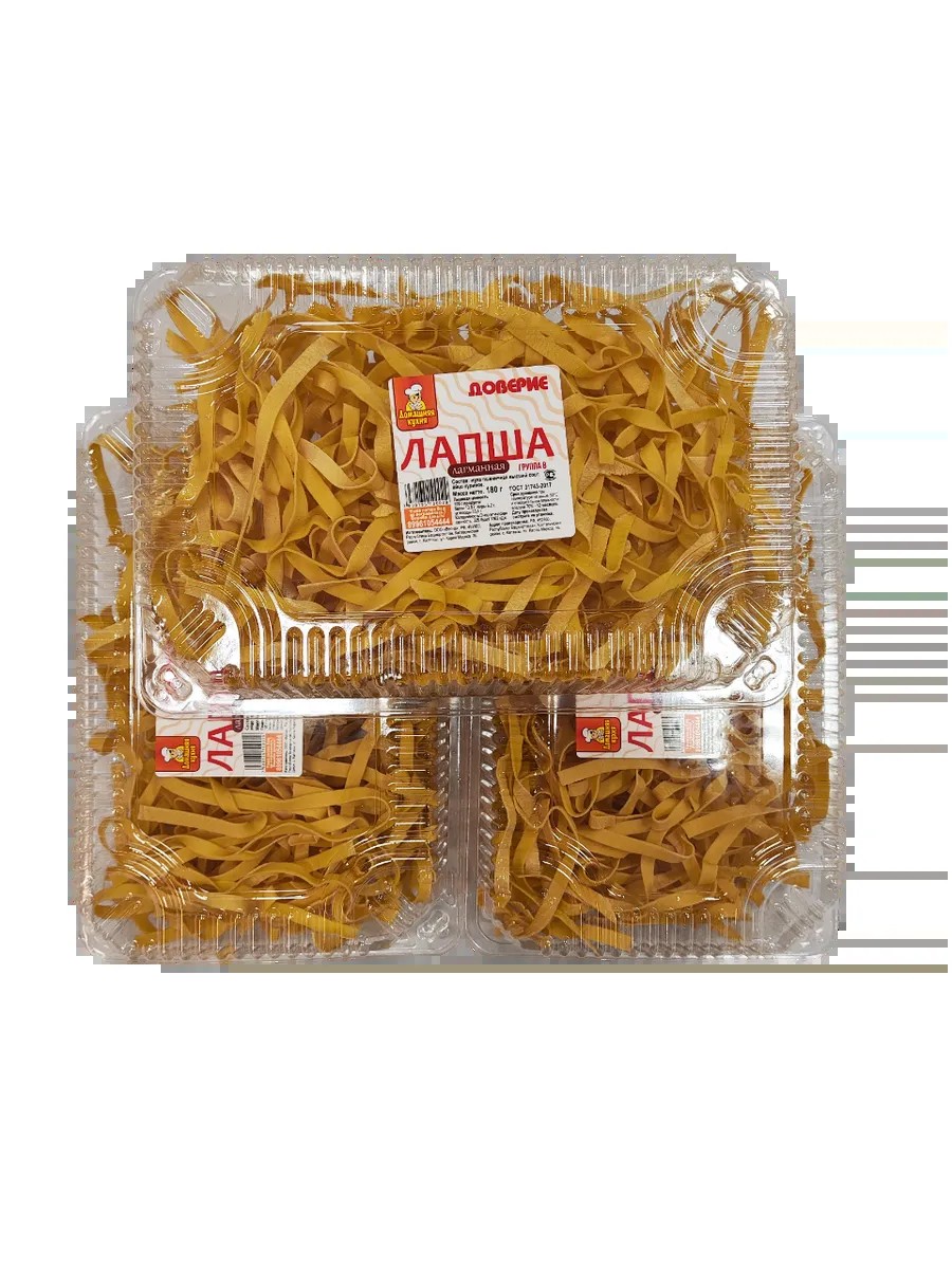 Лапша "ЛапшаЛагманная" "Доверие" - это отличный выбор для быстрого и вкусного обеда или ужина. В упаковке вы найдете 3 порции лапши удон, приготовленной из пшеничной муки высшего сорта и куриных яиц. Лапша не содержит ГМО, ароматизаторов и консервантов, что делает ее полезным и натуральным продуктом. "ЛапшаЛагманная" богата белком и углеводами, что обеспечит вас энергией на весь день.