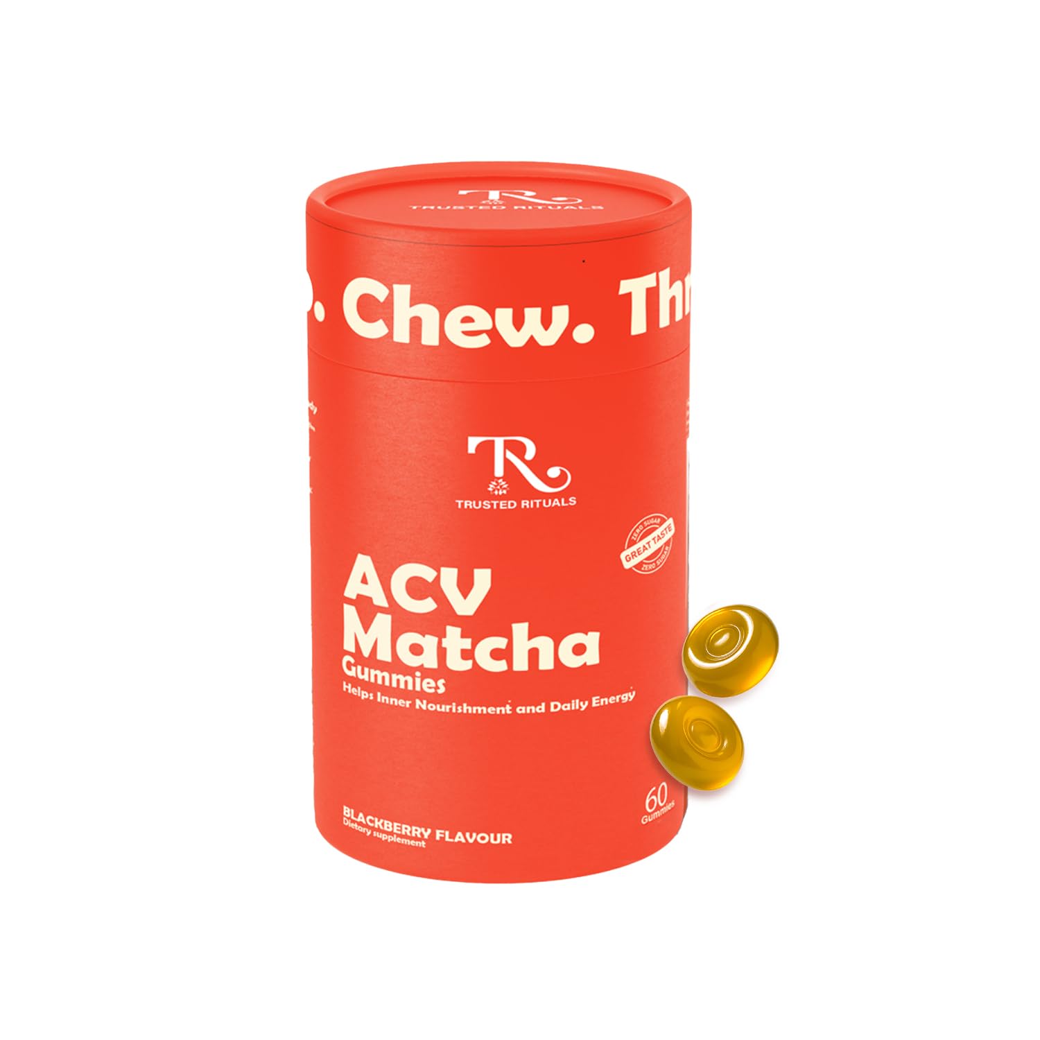 Delicious Sugar-Free Blackberry Flavor – Enjoy all these benefits in a guilt-free, sugar-free gummy that tastes as good as it feels. Ashwagandha and Essential Vitamins (B6, B12 C) – A powerful blend that promotes calm focus, mental clarity, and balanced mood while supporting energy metabolism, immune health, and overall wellbeing. It also helps support cellular energy production, heart health, and a healthy nervous system, helping your body and mind feel their best every day. Matcha – A clean, natural source of smooth, sustained energy, without any jitters or crashes. This antioxidant-rich superfood supports calm focus, mental clarity, and steady alertness throughout the day. Packed with L-theanine, Matcha helps promote balanced energy, enhanced concentration, and overall wellness. It keeps you grounded, refreshed, and naturally energized, making it a daily go-to for focus, vitality, and mindful performance. Apple Cider Vinegar (ACV) – Naturally supports gut health, digestive balance, and a healthy microbiome. ACV helps promote smoother digestion, encourages nutrient absorption, and supports your body's natural cleansing processes, helping you feel balanced, refreshed, and more in tune with your body. Each bottle of ACV Matcha Gummies contains 60 delicious, sugar-free Blackberry-flavored easy to chew gummies packed with the power of Apple Cider Vinegar, Matcha, Ashwagandha, and vitamins B6, B12, and C. Crafted to support your gut health and mental clarity, they're non-GMO, gluten-free, and gelatin-free making them a clean, guilt-free choice for any balanced, mindful lifestyle.