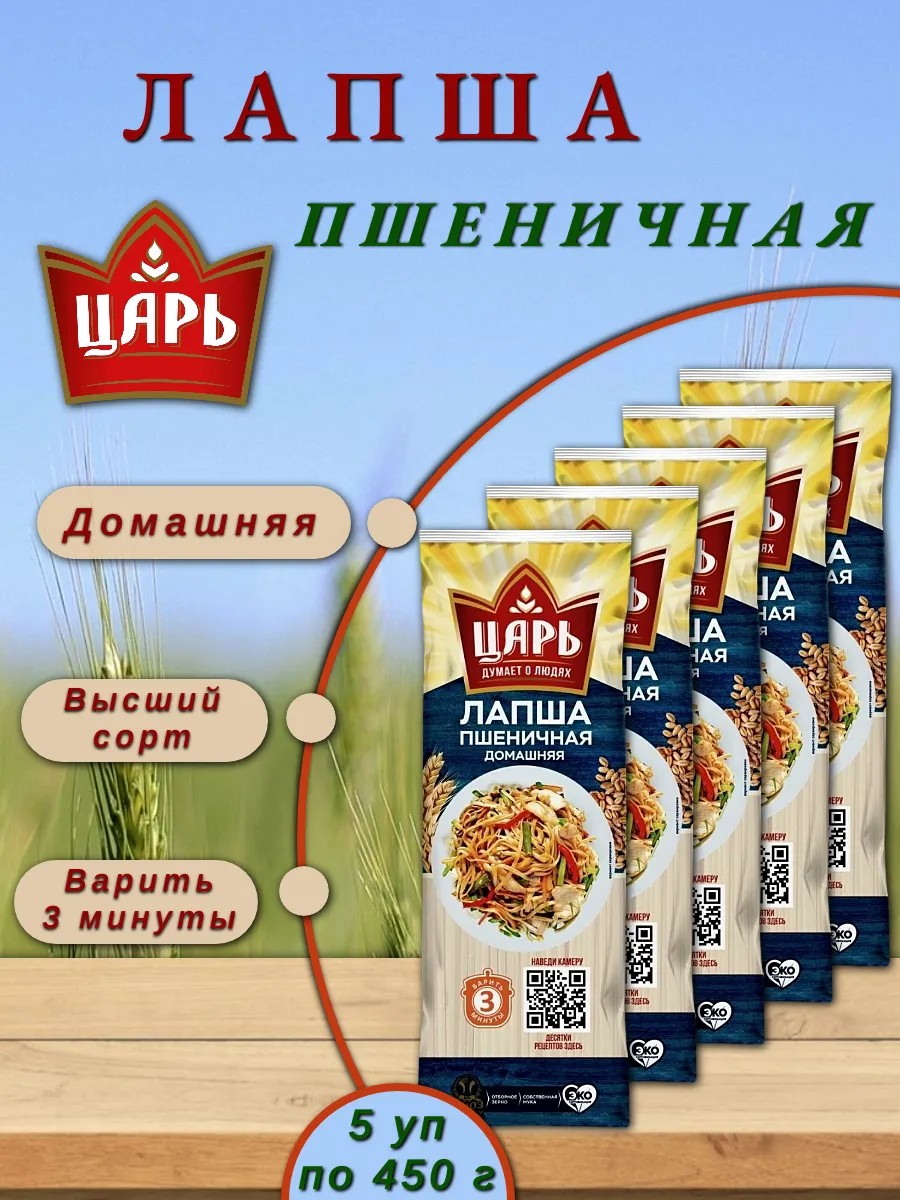 Лапша пшеничная домашняя удон, 5 шт по 450 г «Царь»: Изысканный вкус традиций в каждом блюде