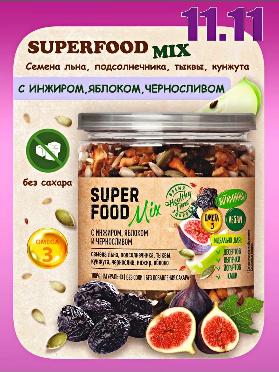 Смесь семян с инжиром, яблоком, черносливом суперфуд 270 г