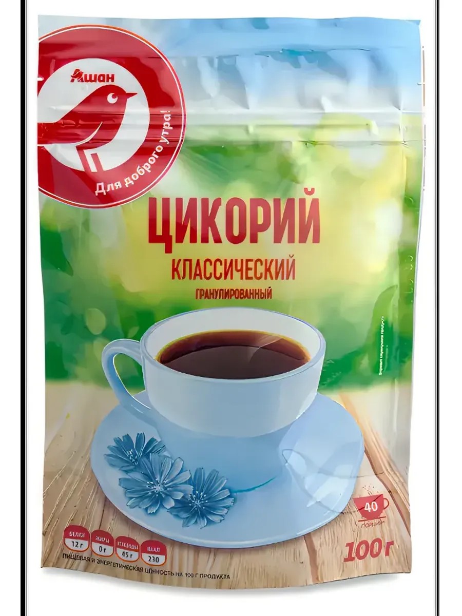 AUCHAN Red Bird Instant Chicory, Granulated, 100g Enhances metabolism, improves digestion, calms the nervous system, alleviates the symptoms of diabetes, liver and gallbladder diseases, relieves tachycardia, improves overall body tone, and improves blood composition.