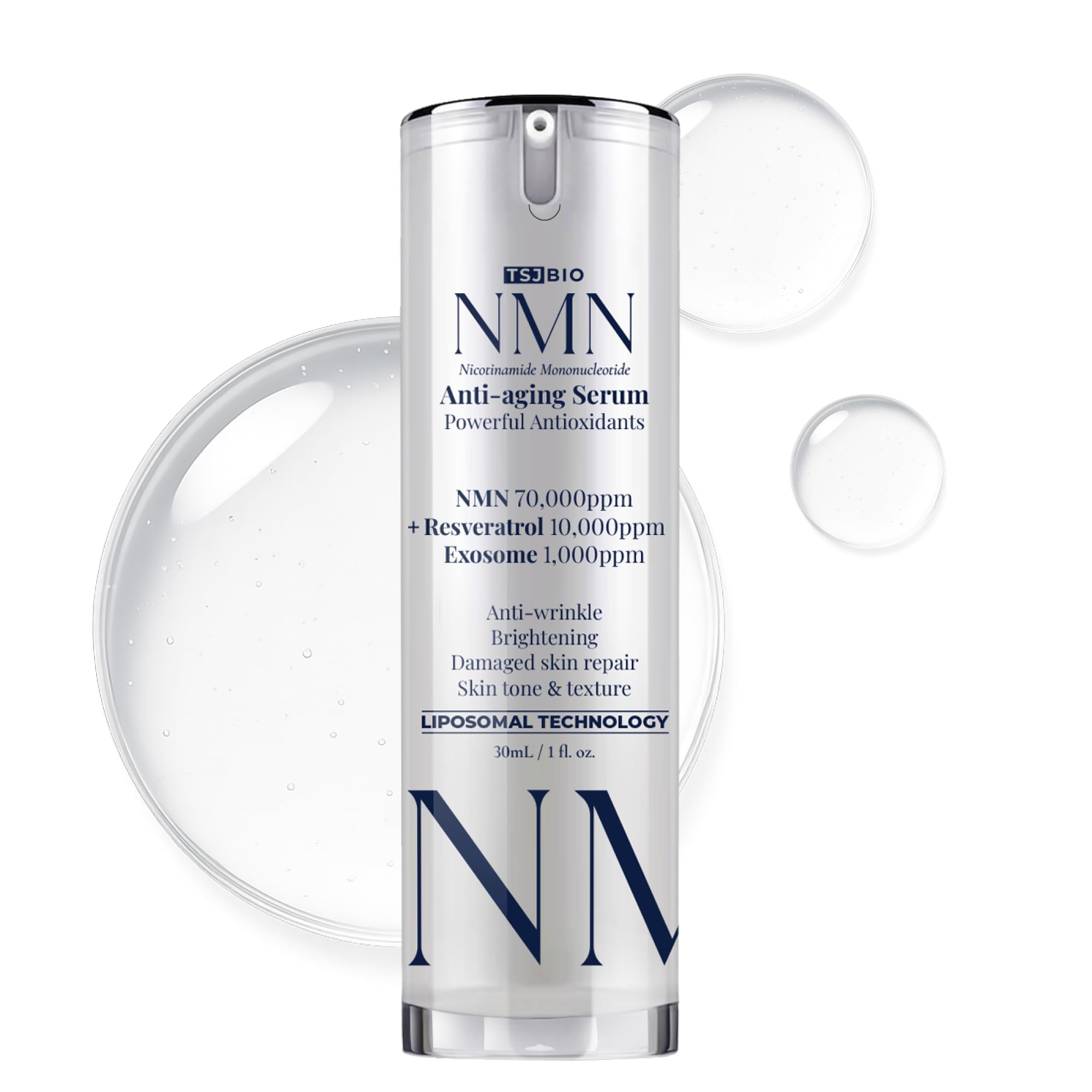 TSJ Bio NMN Radiance Renewal Serum - Professional Grade Skincare with NMN 70,000PPM, Resveratrol & Exosome Complex (1.01 fl oz)