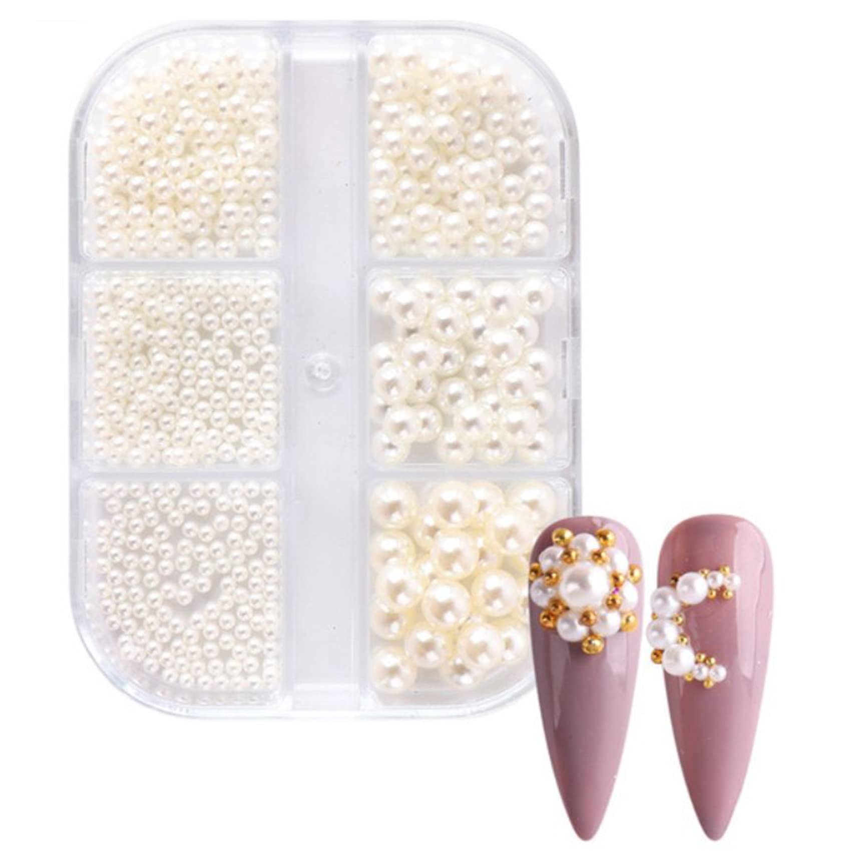 TsoLay 1Box Pearl Nail Charms White Round Nail Parts Gold Steel Beads Balls Jewelry Nail Art Accessories Color:ZZ15