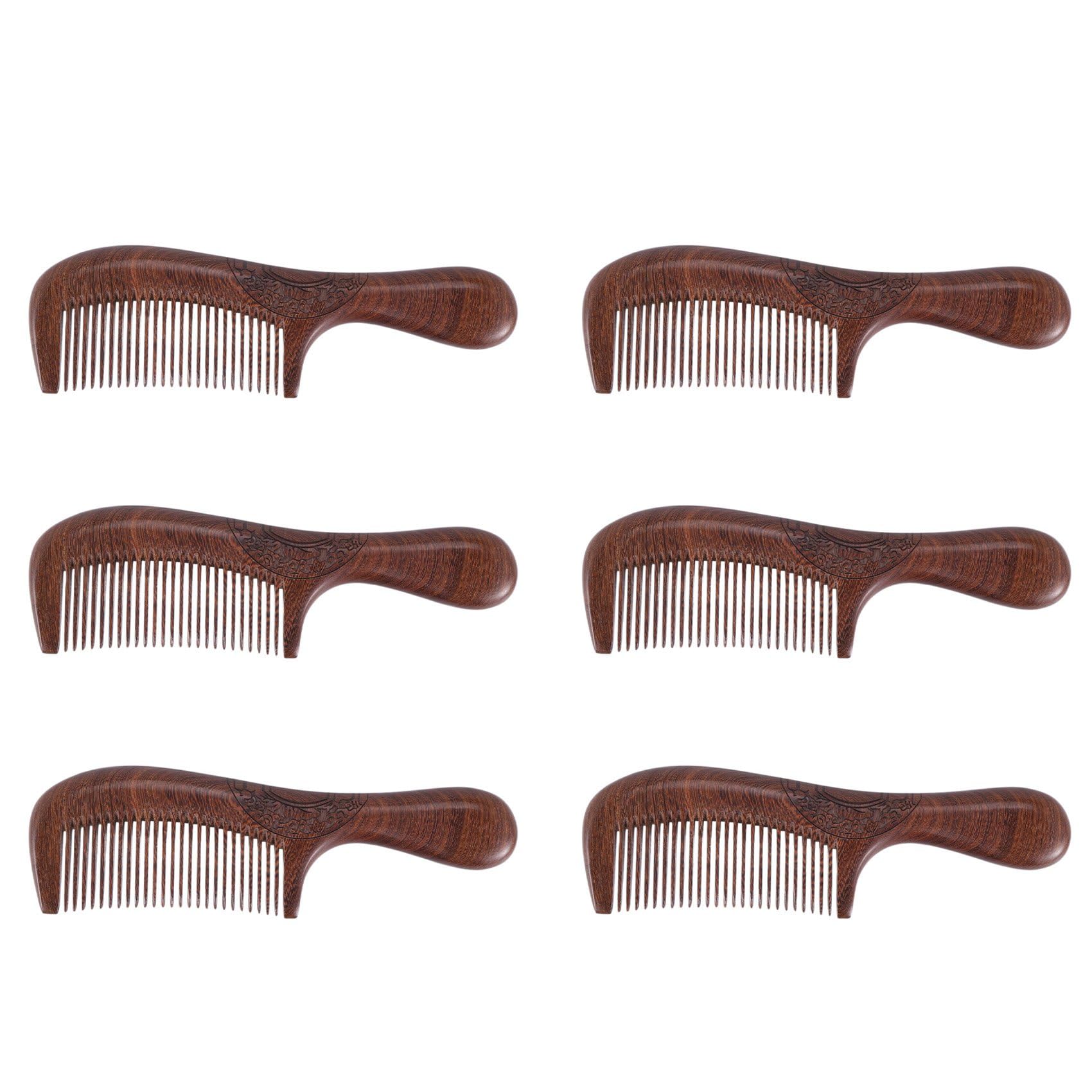 TsoLay 6X Unisex Sandalwood Comb Women Men Home Travel Wood Anti-Static Fine-Tooth Comb Wooden Handles Hair Comb