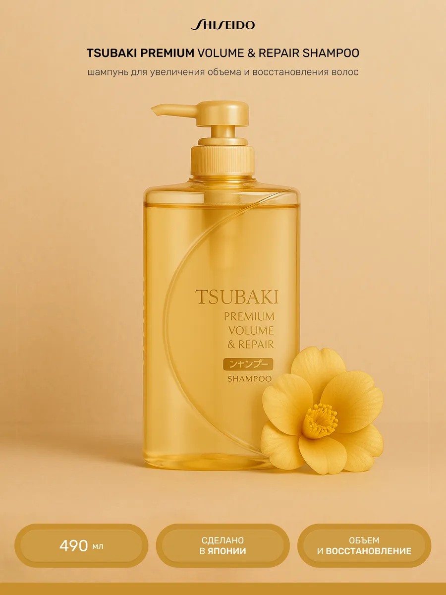 Подарите вашим волосам лучший уход с шампунем Tsubaki Premium Volume & Repair, и они будут благодарны вам своей красотой и здоровьем!