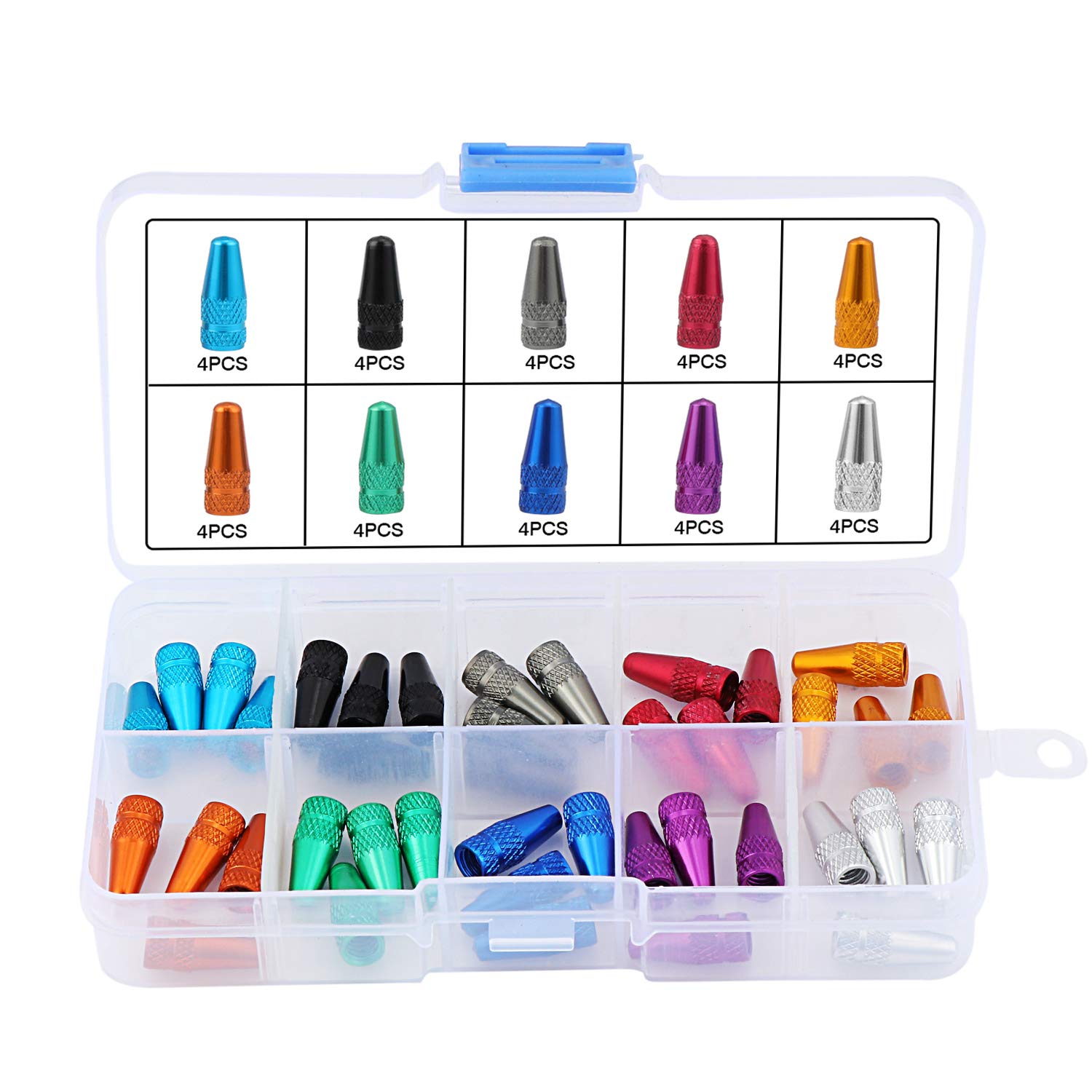 : Can provide you with more interesting dust protection caps, cool design, a variety of color.Interesting bicycle valve caps improve the appearance of your bike! Characteristics: -to install and replace them.Screw the valve caps firmly onto the tire valve. -tire valve cap keep the mud, curd cheese and rainwater away from the stem.If you slip tires in the stem, air runs out on the valve. -In addition to extend the lifespan of the tires, please put valve caps on your bike tire and close it. Specifications: Material: aluminum alloy Height: 18 mm Inner diameter: 4 mm Outside diameter: 7 mm Package Contents: 40pcs x French bicycle valve cap Sweet tip: Before ordering, please pay attention to the size of whether it is suitable for your tire valve.material: aluminum alloy Height: 18 mm Inner diameter: 4 mm Outside diameter: 7 mm 0.275 "" Color: 10 colors To choose from: red, silver, sky blue, black, blue, purple, green, titanium black, orange, gold. Cool bike valve cap, eye-catcher for your bike. Bicycle tire valve caps are easy to installAnd to remove and fit on mountain bikes, racing bikes and folding bodies (not suitable for the car).: Kann Ihnen interessantere Staubschutzkappen, kühles Design, mannigfaltige Farbe zur Verfügung stellen. Interessante Fahrradventilkappen verbessern das Aussehen Ihres Rades! Eigenschaften: -Einfach zu installieren und zu ersetzen. Schrauben Sie die Ventilkappen fest auf den Reifenventilschaft. -Reifenventilkappen halten Schlamm, Quark und Regenwasser vom Stiel fern. Wenn Ihr Reifen im Vorbau verrutscht, tritt am Ventil Luft aus. -Um die Lebensdauer der Reifen zu verlängern, setzen Sie bitte Ventilkappen auf Ihren Fahrradreifen und schließen Sie ihn. Spezifikationen: Material: Aluminiumlegierung Höhe: 18 mm Innendurchmesser: 4 mm Außendurchmesser: 7 mm Paket Inhalt: 40pcs x Französisch Fahrrad Ventilkappen Süßer Tipp: Bitte achten Sie vor der Bestellung auf die Größe, ob diese für Ihr Reifenventil geeignet ist.Material: Aluminiumlegierung Höhe: 18 mm Innendurchmesser: 4 mm Außendurchmesser: 7 mm 0,275 "" Farbe: 10 Farben zur Auswahl: Rot, Silber, Himmelblau, Schwarz, Blau, Lila, Grün, Titanschwarz, Orange, Gold. Coole Fahrradventilkappen, Blickfang für Ihr Fahrrad. Fahrradreifen-Ventilkappen sind einfach zu installieren und zu entfernen und passen auf Mountainbikes, Rennräder und Falträder. (Nicht fürs Auto geeignet). Reifenstaubkappen verhindern, dass Schlamm, Schmutz und Regenwasser aus Ihren Reifenventilkernen austreten. Langlebig und leicht. Ventilkappen bestehen aus einer extrem leichten Aluminiumlegierung.TsunNee 40 Stück Französisch Fahrrad-Ventilkappen, Fahrrad Reifen Ventilkappen Abdeckung, Französisch Reifen Ventilkappen, 10 Farben