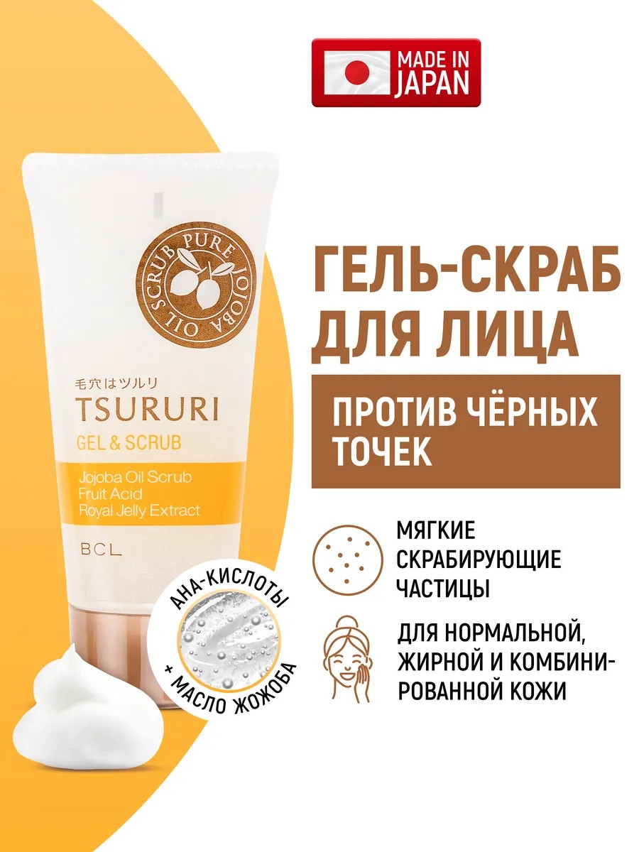 Tsururi Гель-скраб для глубокого очищения пор с маслом жожоба, 55 г